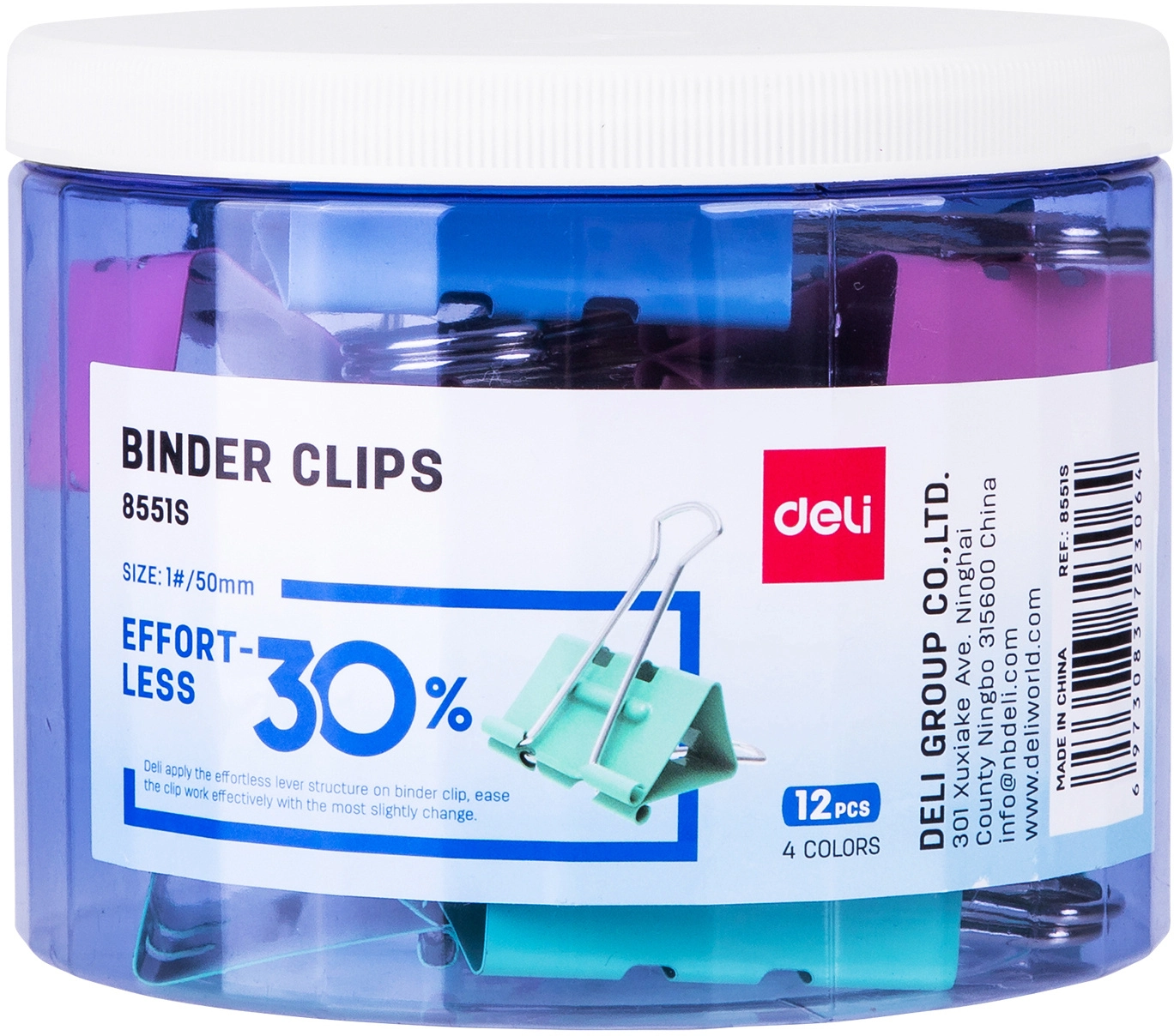 Зажимы Deli E8551S металл 50мм ассорти (упак.:12шт) пластиковая туба (продается кратно 12 шт.)