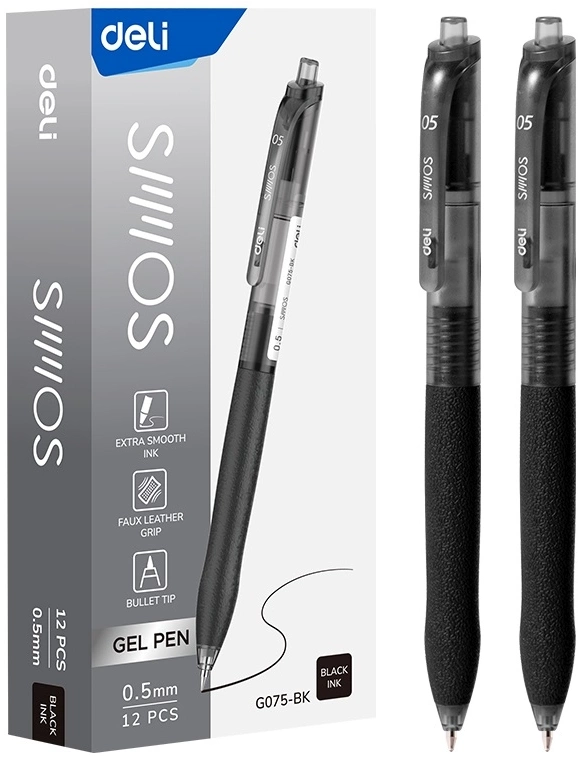 Ручка гелев. автоматическая Deli EG075-BK d=0.5мм черн. черн. резин. манжета (продается кратно 12 шт.)