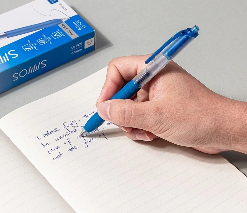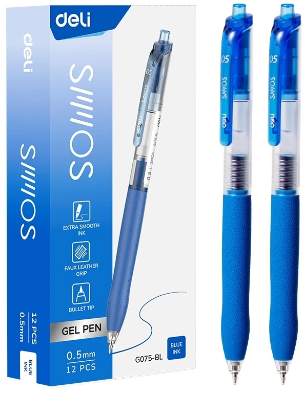 Ручка гелев. автоматическая Deli EG075-BL d=0.5мм син. черн. резин. манжета (продается кратно 12 шт.)