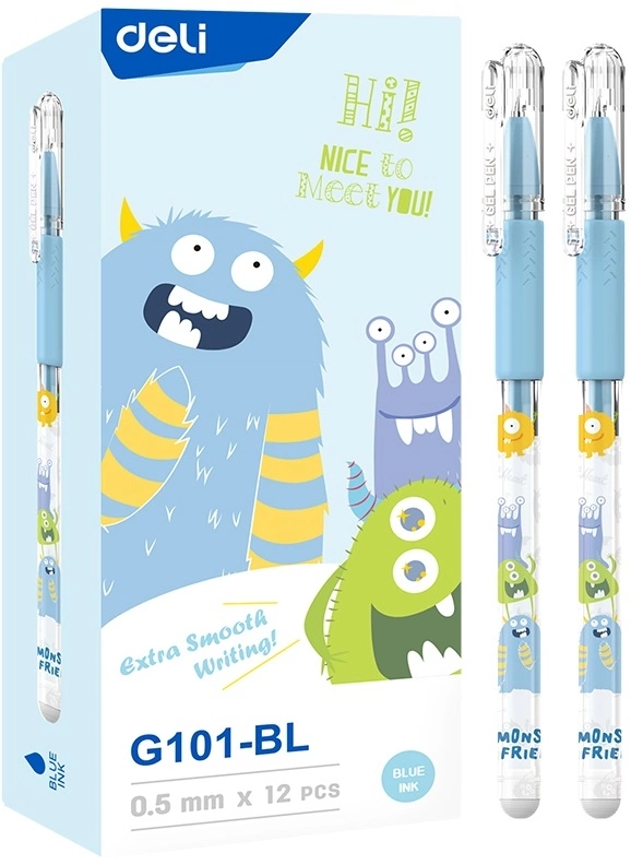 Ручка гелев. Deli EG101-BL прозрачный d=0.5мм син. черн. карт.уп. игловидный пиш. наконечник резин. манжета (продается кратно 12 шт.)