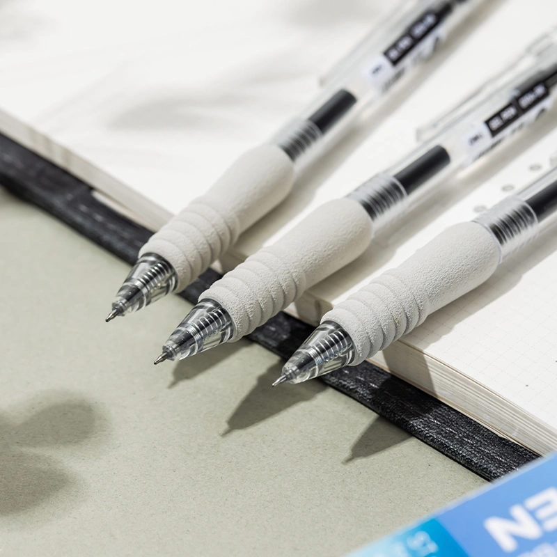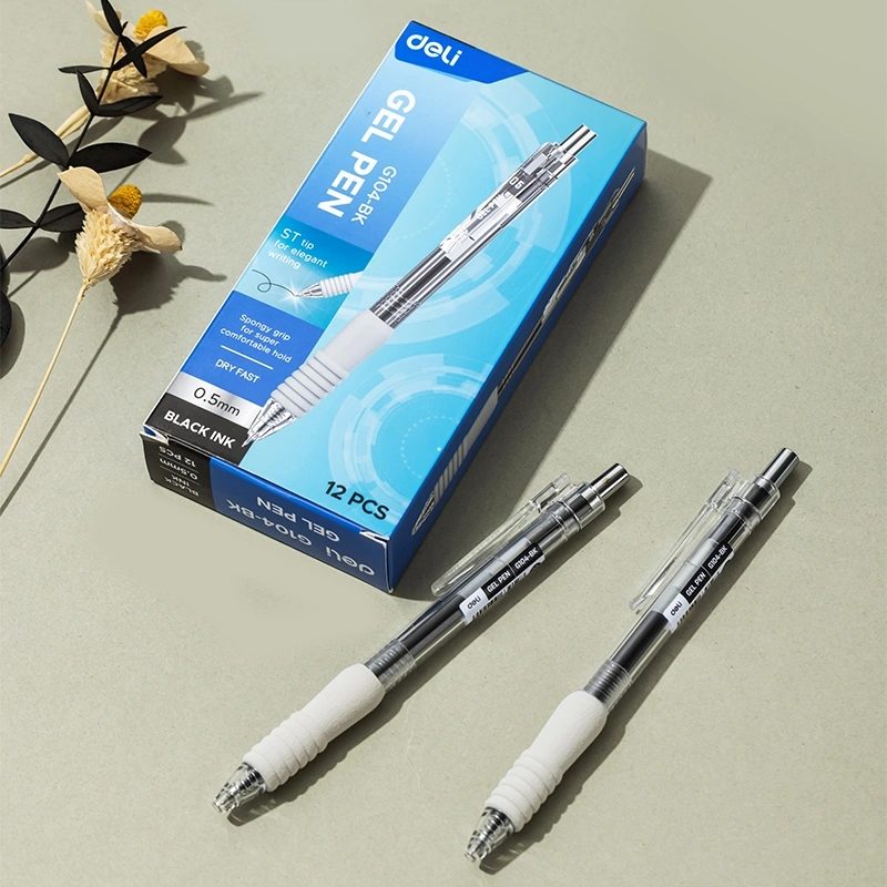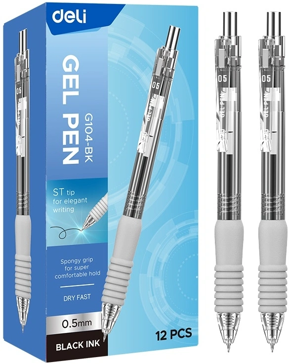 Ручка гелев. автоматическая Deli EG104-BK прозрачный/серый d=0.5мм черн. черн. карт.уп. резин. манжета (продается кратно 12 шт.)
