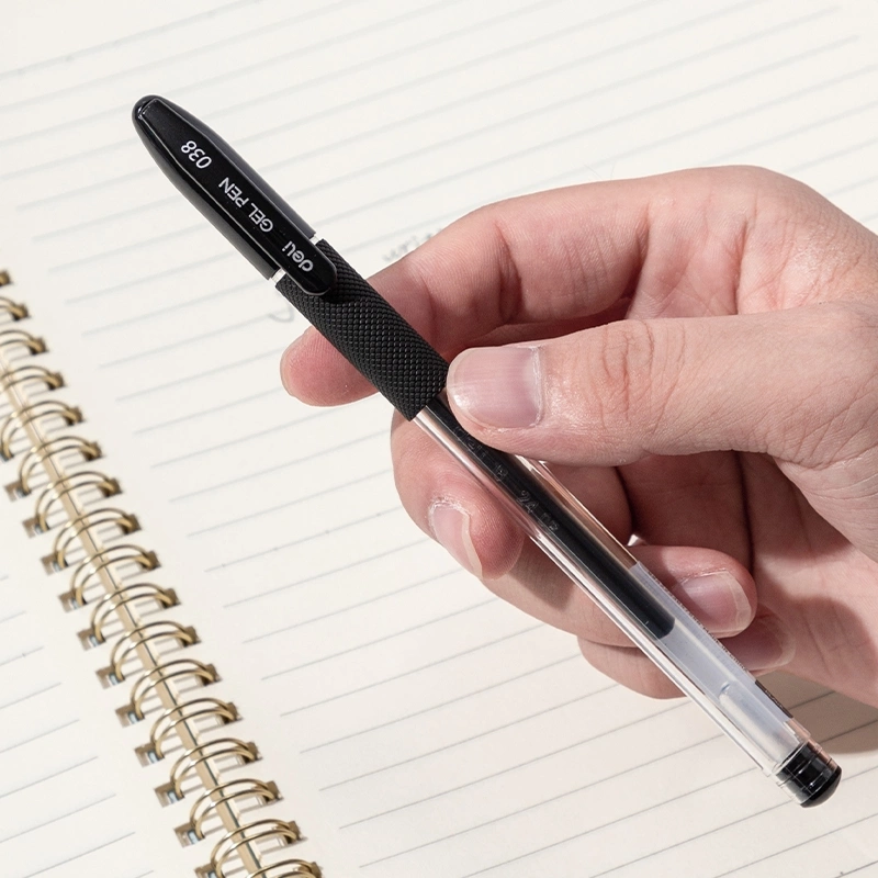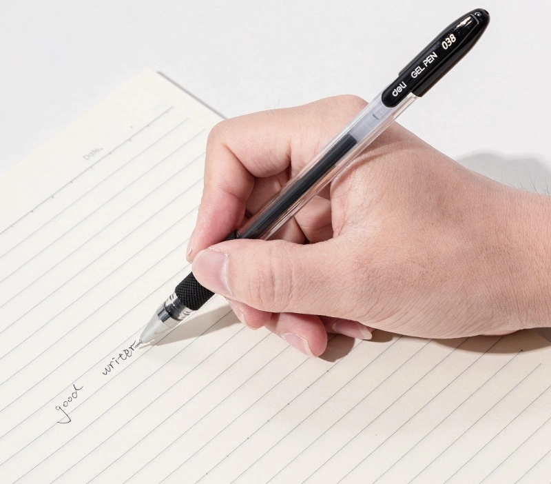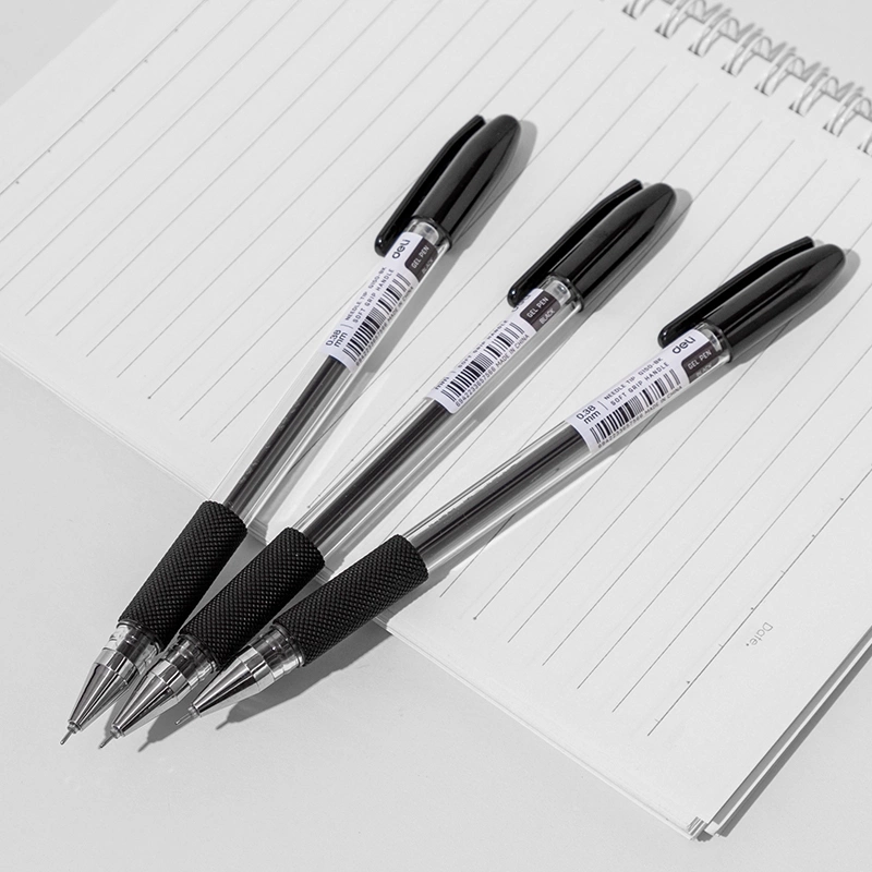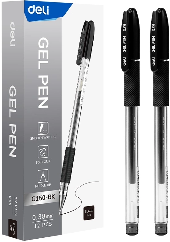 Ручка гелев. Deli EG150-BK прозрачный d=0.38мм черн. черн. игловидный пиш. наконечник резин. манжета (продается кратно 12 шт.) | НИКС Екатеринбург