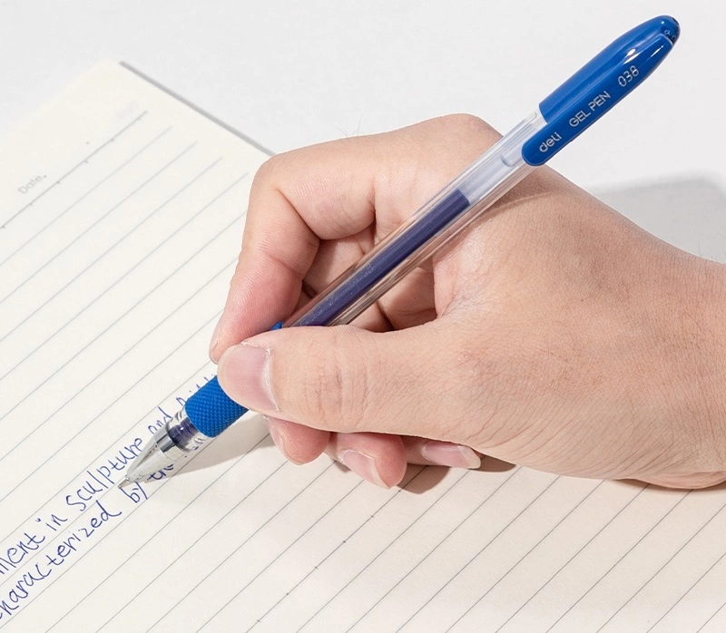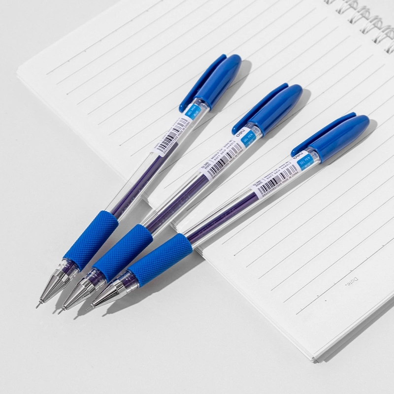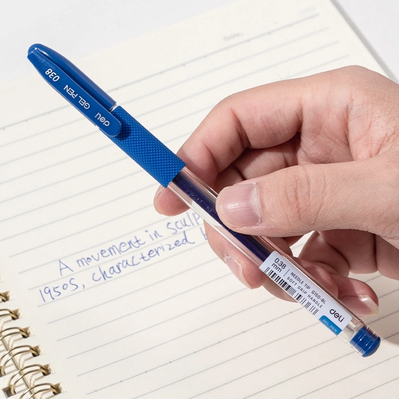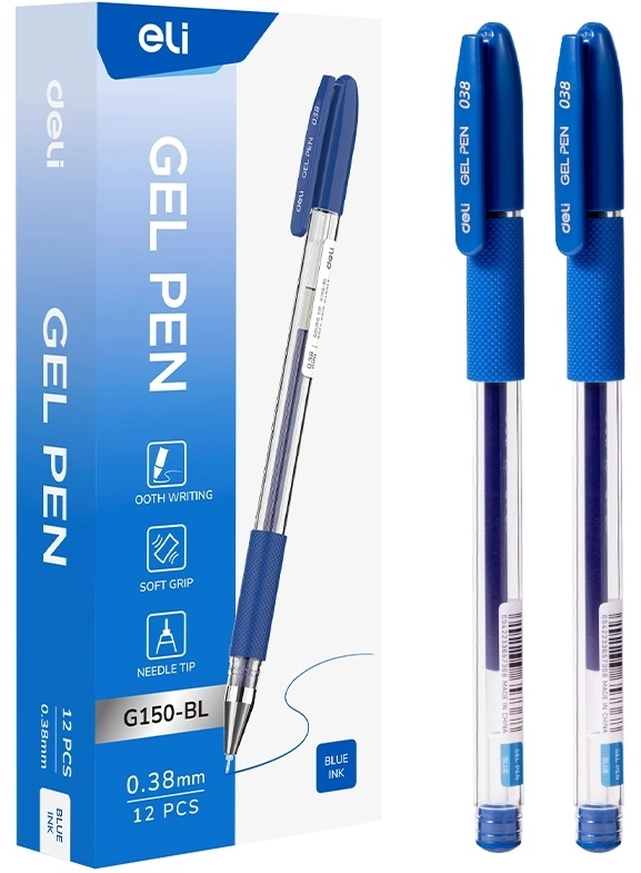 Ручка гелев. Deli EG150-BL прозрачный d=0.38мм син. черн. игловидный пиш. наконечник резин. манжета (продается кратно 12 шт.)