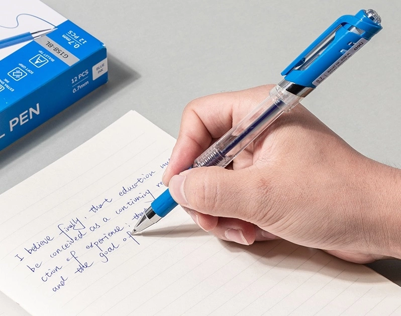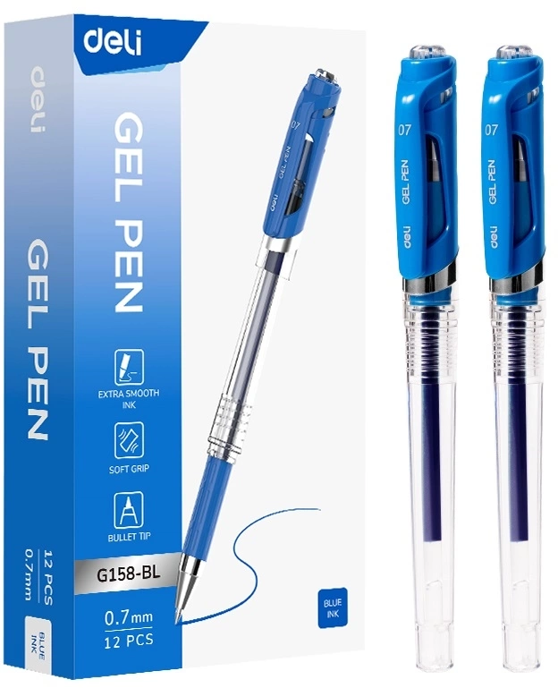 Ручка гелев. Deli EG158-BL прозрачный d=0.7мм син. черн. резин. манжета (продается кратно 12 шт.)