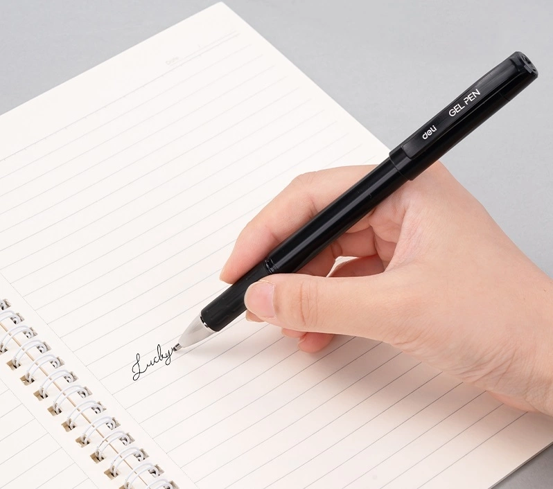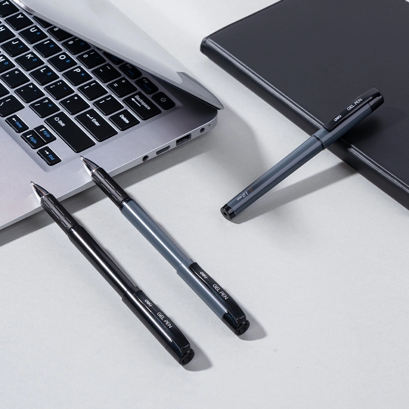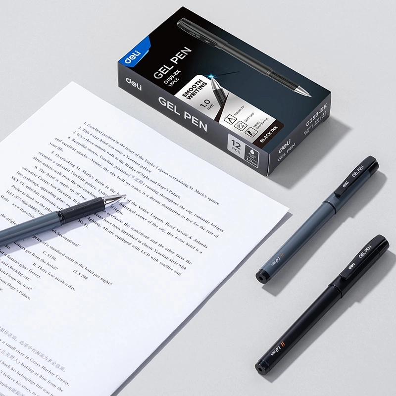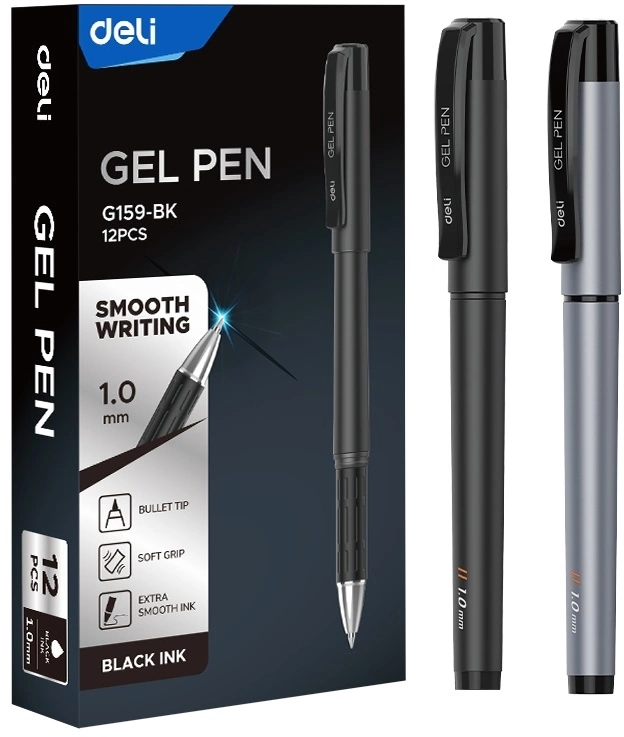 Ручка гелев. Deli EG159-BK ассорти d=1.0мм черн. черн. резин. манжета (продается кратно 12 шт.)