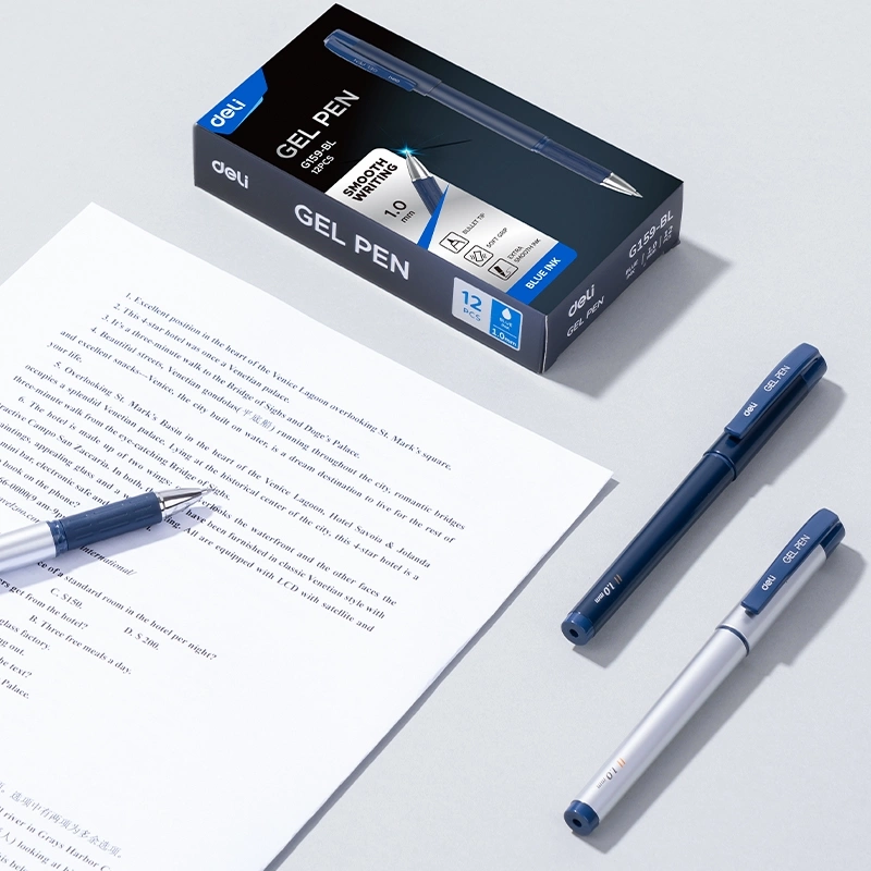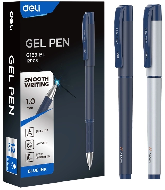Ручка гелев. Deli EG159-BL ассорти d=1.0мм син. черн. резин. манжета (продается кратно 12 шт.)