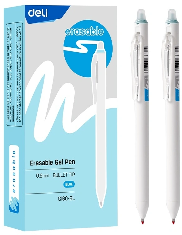 Ручка гелев. Deli EG160-BL белый d=0.5мм гол. черн. кругл. стираемая (продается кратно 12 шт.)