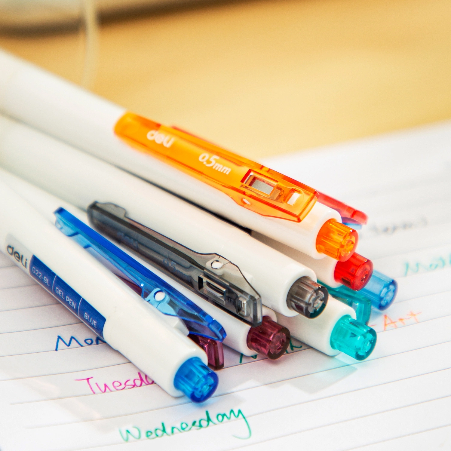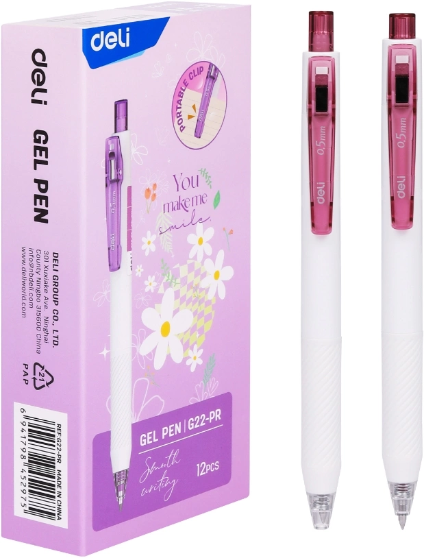 Ручка гелевая автоматическая Deli, EG22-PR, фиолетовая, 0,5мм, белый корпус, клип-прищепка, мягкое письмо, картонная коробка