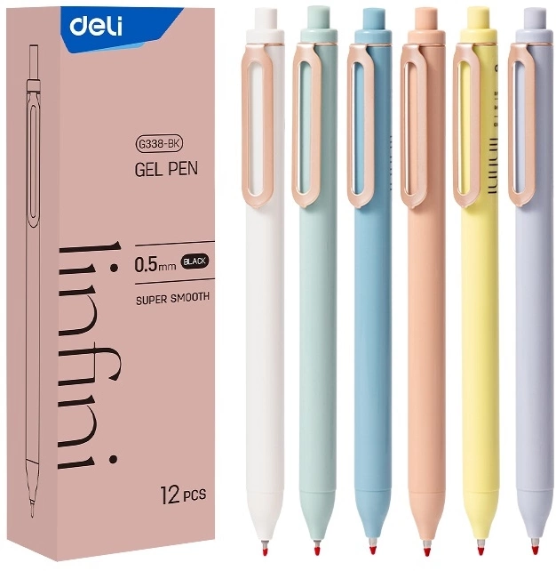Ручка гелев. автоматическая Deli EG338-BK ассорти d=0.5мм черн. черн. (продается кратно 12 шт.)