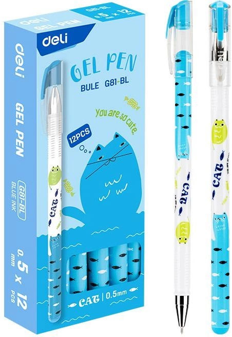 Ручка гелев. Deli EG81-BL ассорти син. черн. линия 0.5мм (продается кратно 12 шт.)