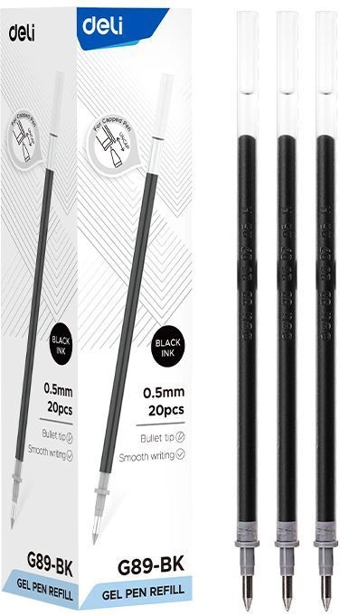 Стержень для гелевой ручки Deli EG89-BK, пулевидный наконечник 0,5 мм, чернила черные, подходит для E6600S, EG81, EG90, EG85, EG65, EG64, EG15, EG31