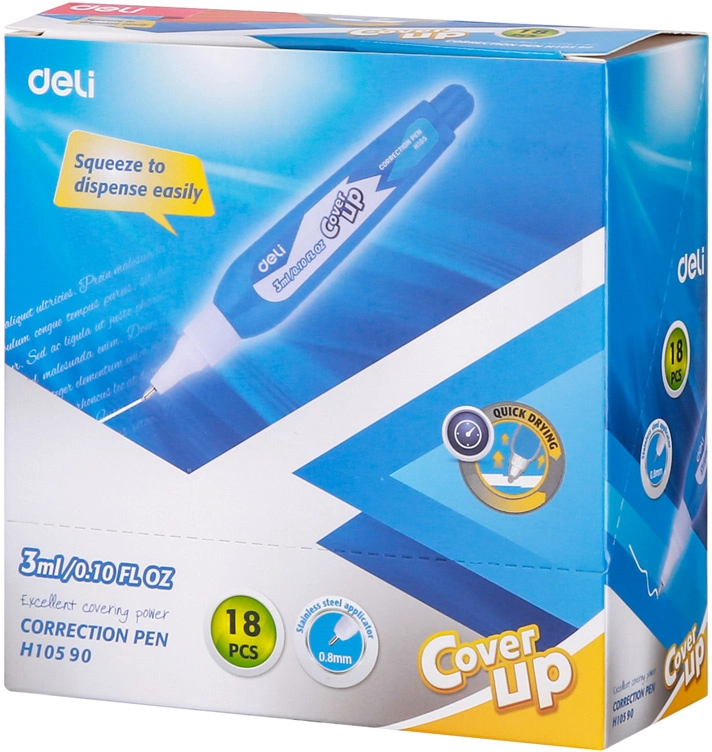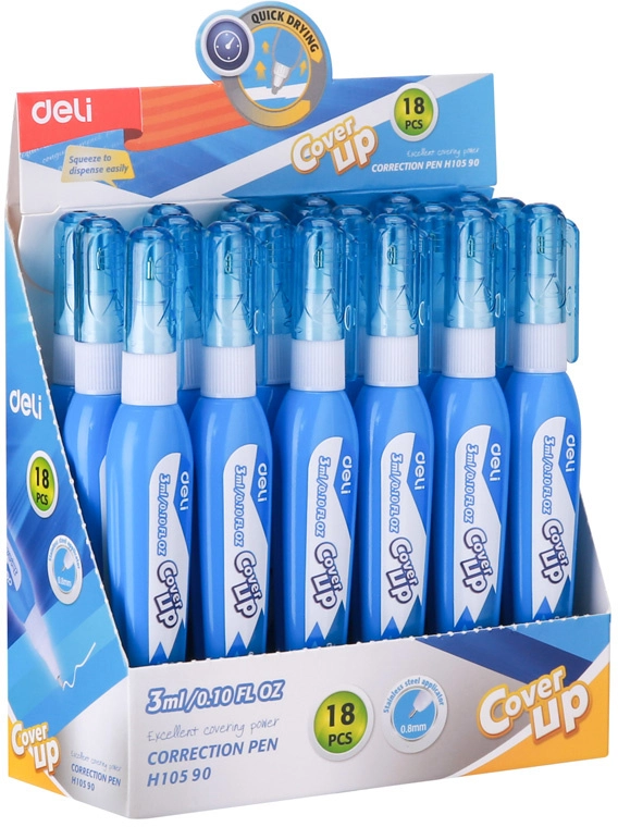Ручка корректор Deli EH10590 голубой корпус белый 3мл дисплей картонный (продается кратно 18 шт.)