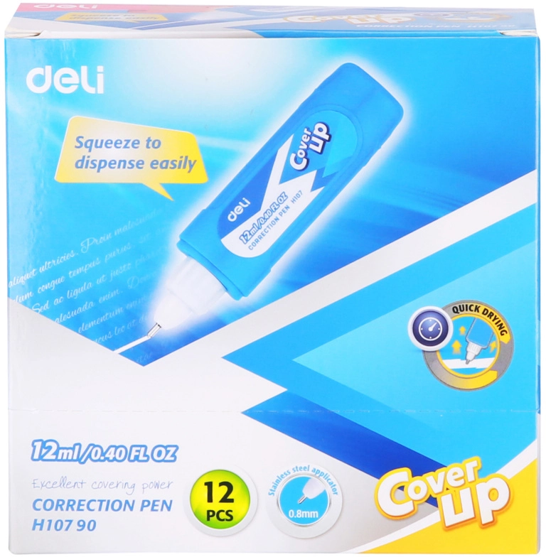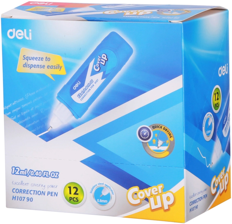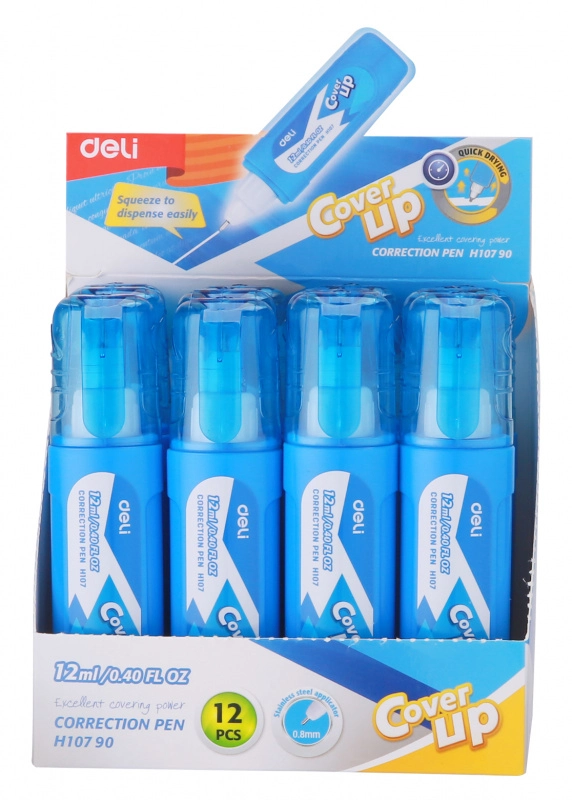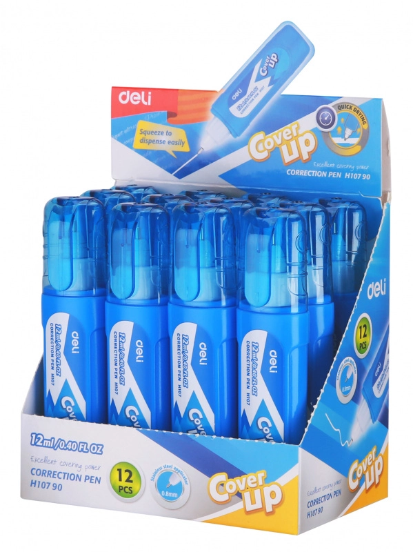 Ручка корректор Deli EH10790 голубой корпус белый 12мл дисплей картонный (продается кратно 12 шт.)