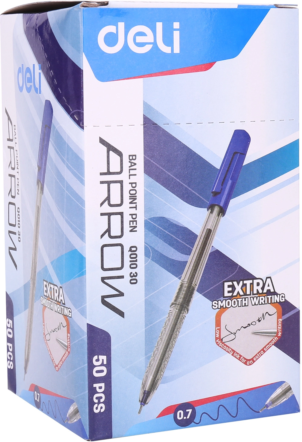 Ручка шариков. Deli EQ01030 прозрачный d=0.7мм син. черн. уп.пласт. сменный стержень синий (продается кратно 50 шт.)