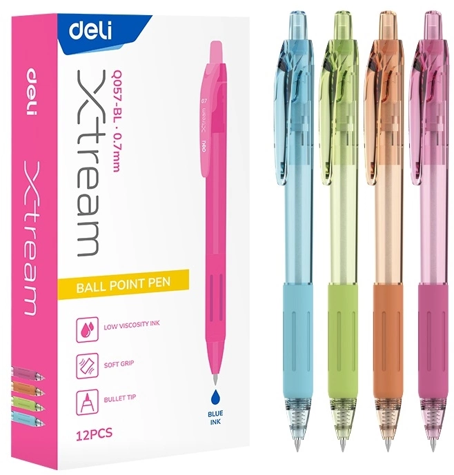 Ручка шариков. автоматическая Deli EQ057-BL ассорти d=0.7мм син. черн. кор.карт. резин. манжета (продается кратно 12 шт.)