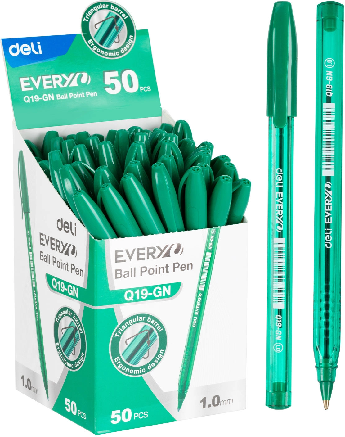 Ручка шариков. Deli EQ19-GN зеленый d=1мм зел. черн. (продается кратно 50 шт.)