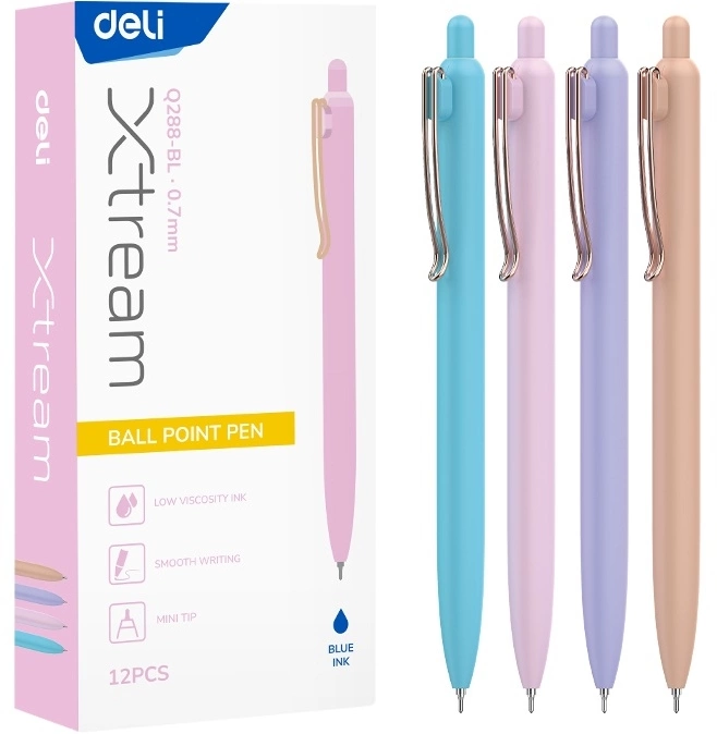 Ручка шариков. автоматическая Deli (EQ288-BL) ассорти d=0.7мм син. черн. кор.карт. игловидный пиш. наконечник (продается кратно 12 шт.)