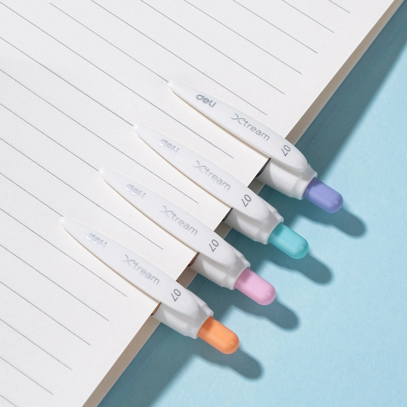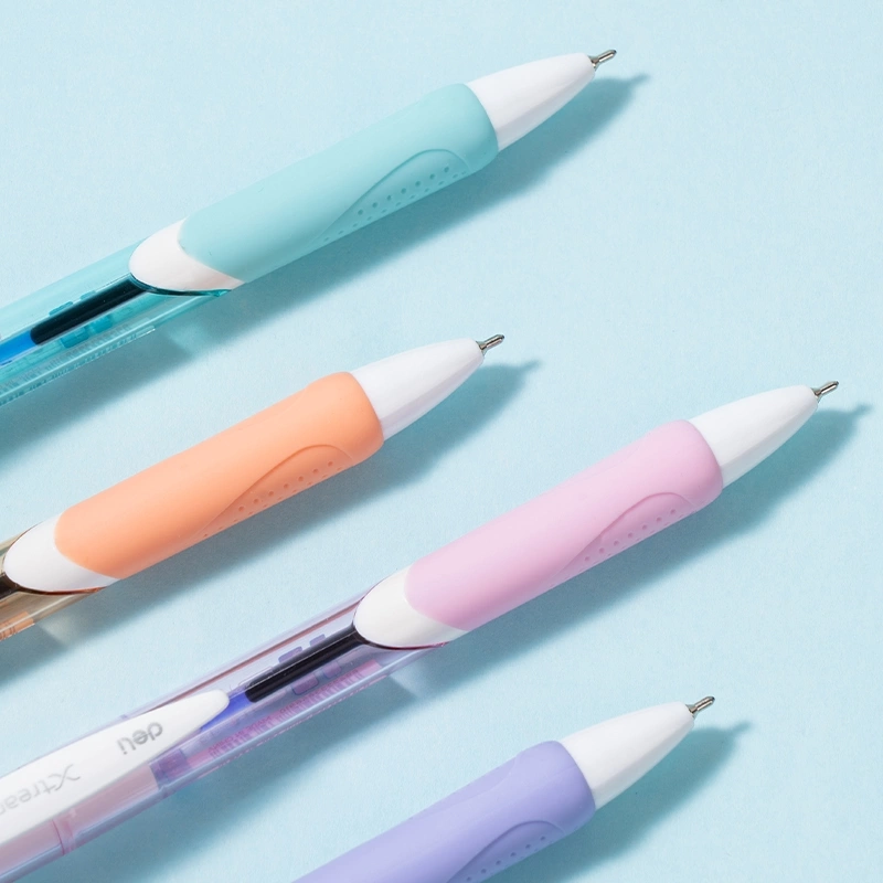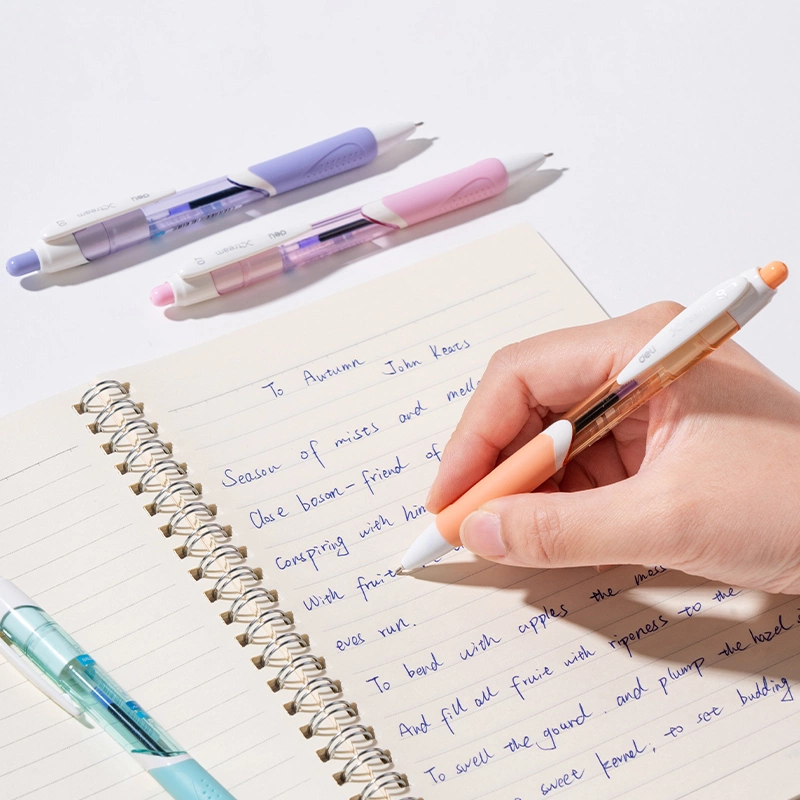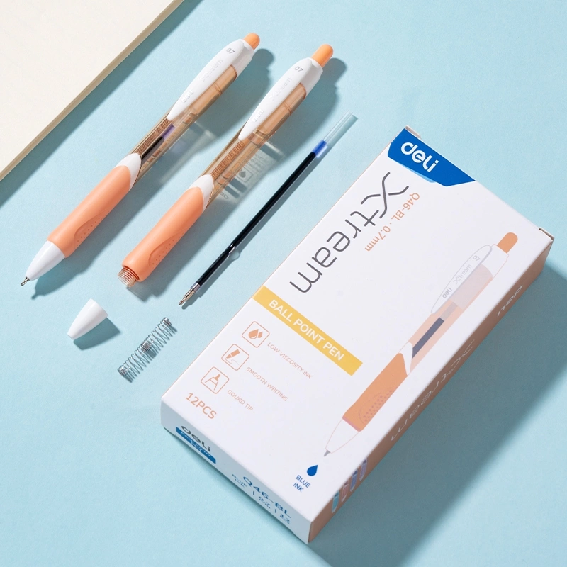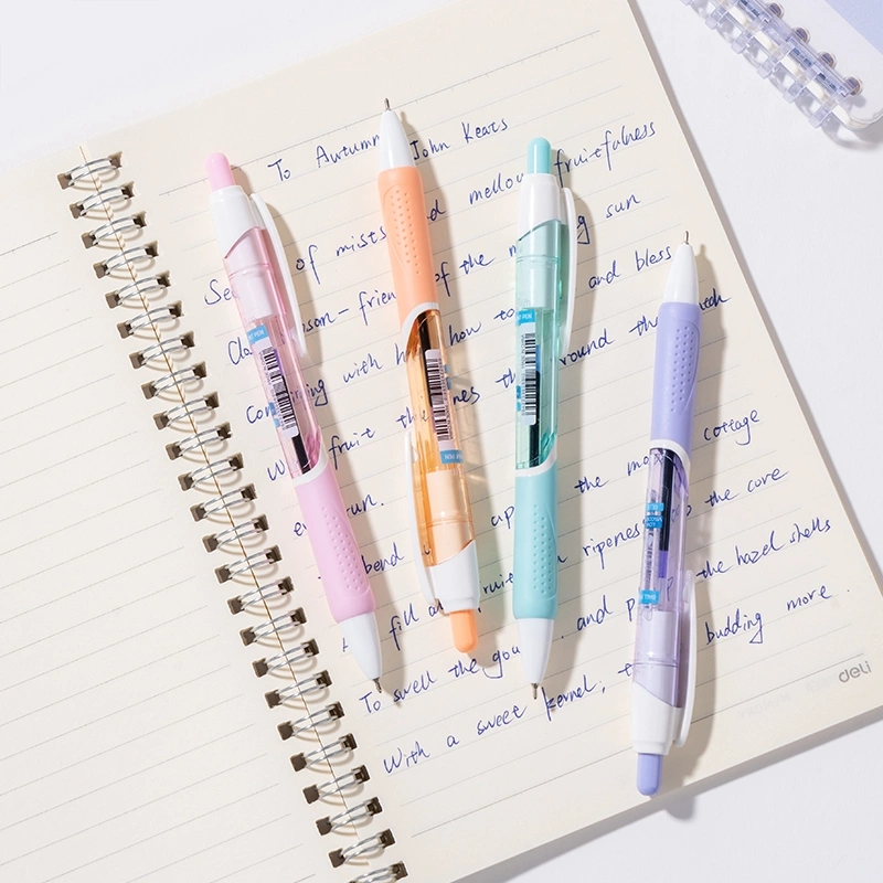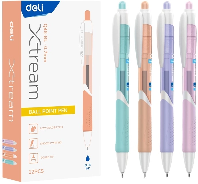 Ручка шариков. автоматическая Deli (EQ46) ассорти d=0.7мм син. черн. кор.карт. игловидный пиш. наконечник резин. манжета (продается кратно 12 шт.)