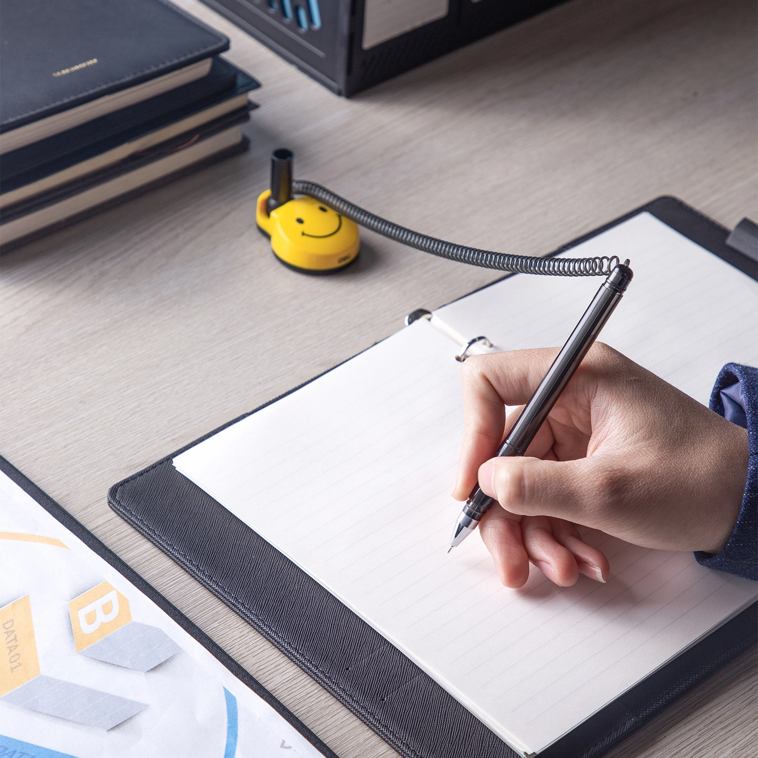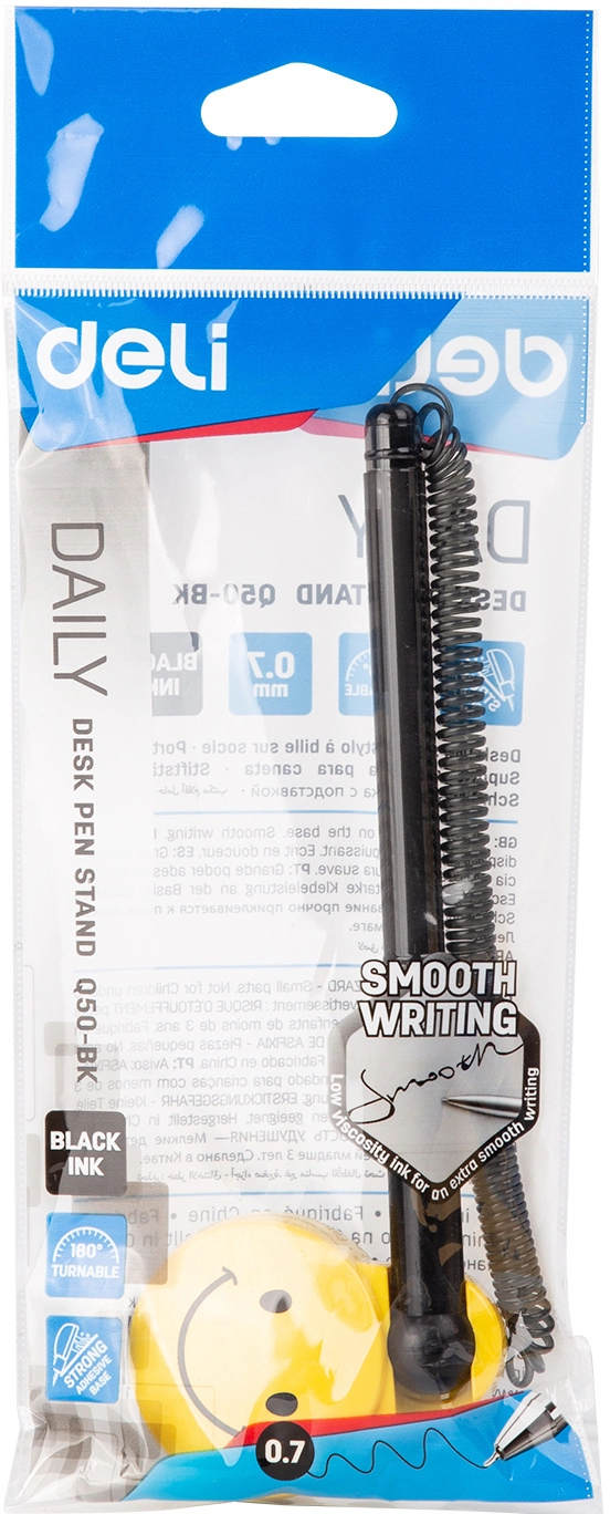 Ручка шариков. автоматическая Deli EQ50-BK черн/прозрачный d=0.7мм черн. черн. (1шт) на подставке резин. манжета (продается кратно 24 шт.)