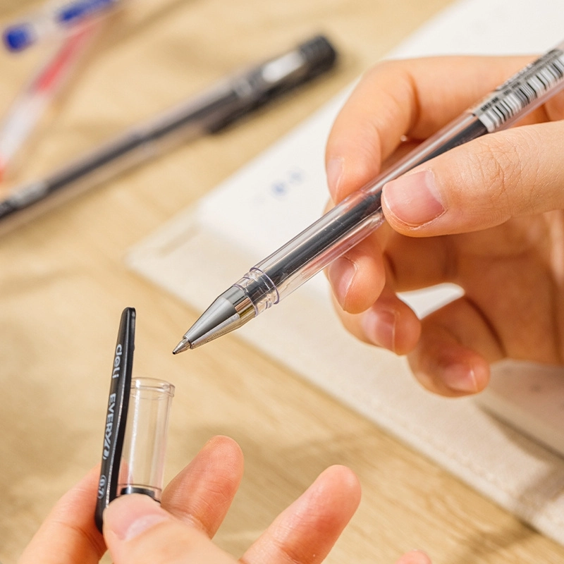 Ручка гелев. Deli EveryU EG82-BK прозрачный d=0.7мм черн. черн. 1стерж. кругл. (продается кратно 12 шт.)