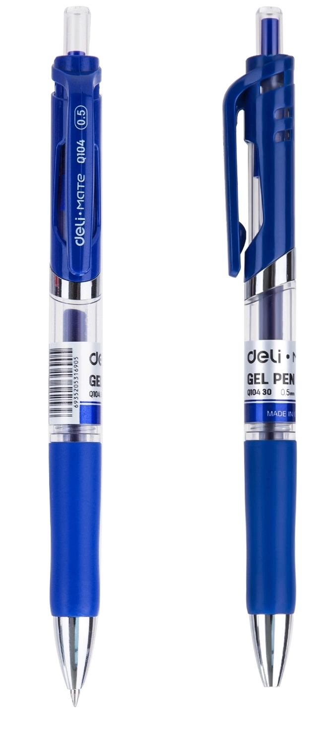 Набор ручек гелев. автоматическая Deli Mate (EQ10430-P) прозрачный/синий d=0.5мм син. черн. кор.карт. (12шт) (продается кратно 12 шт.)