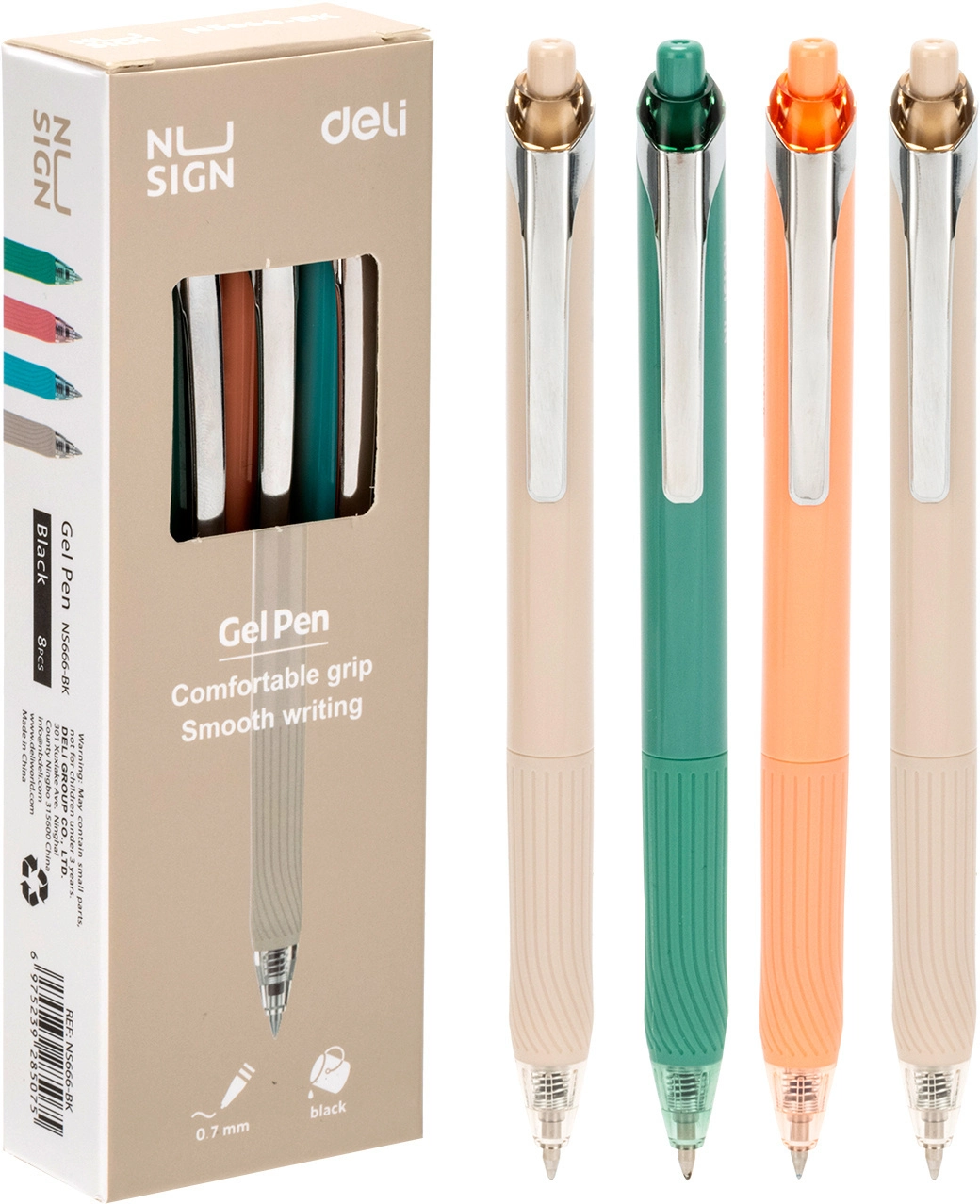 Ручка гелев. автоматическая Deli Nusign ENS666-BK ассорти черн. черн. линия 0.7мм резин. манжета (продается кратно 8 шт.)