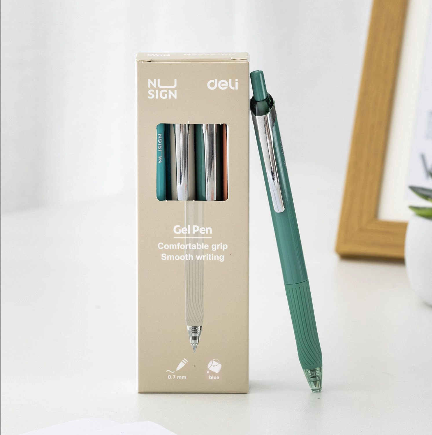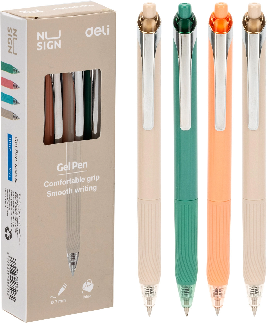 Ручка гелев. автоматическая Deli Nusign ENS666-BL ассорти син. черн. линия 0.7мм резин. манжета (продается кратно 8 шт.)