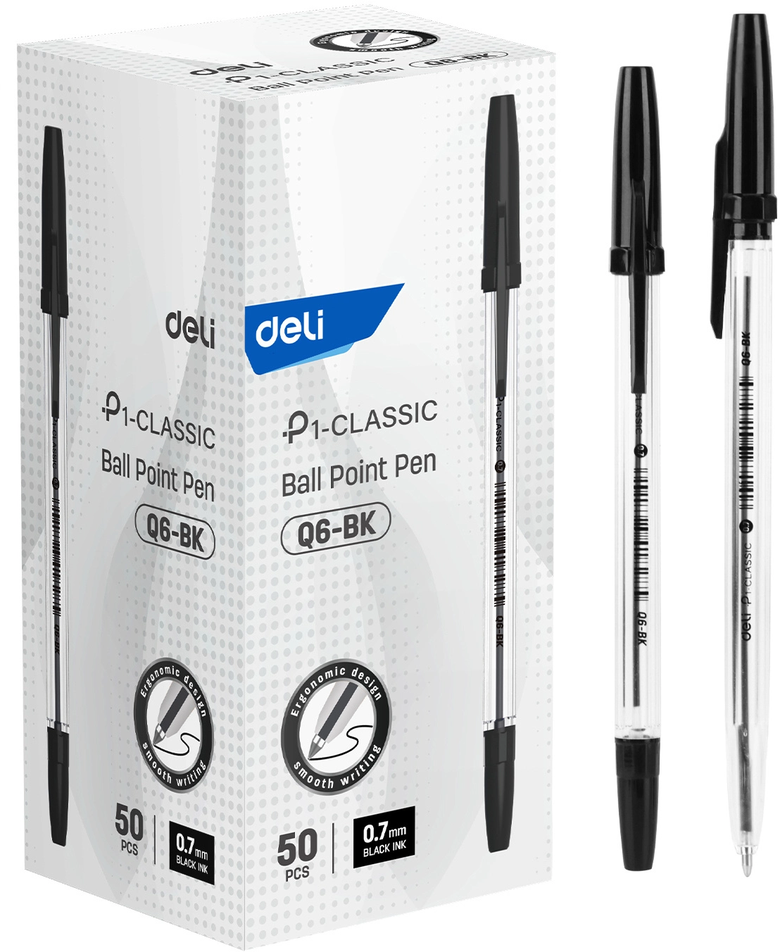 Ручка шариков. Deli P1-Classic EQ6-BK прозрачный d=0.7мм черн. черн. (продается кратно 50 шт.)