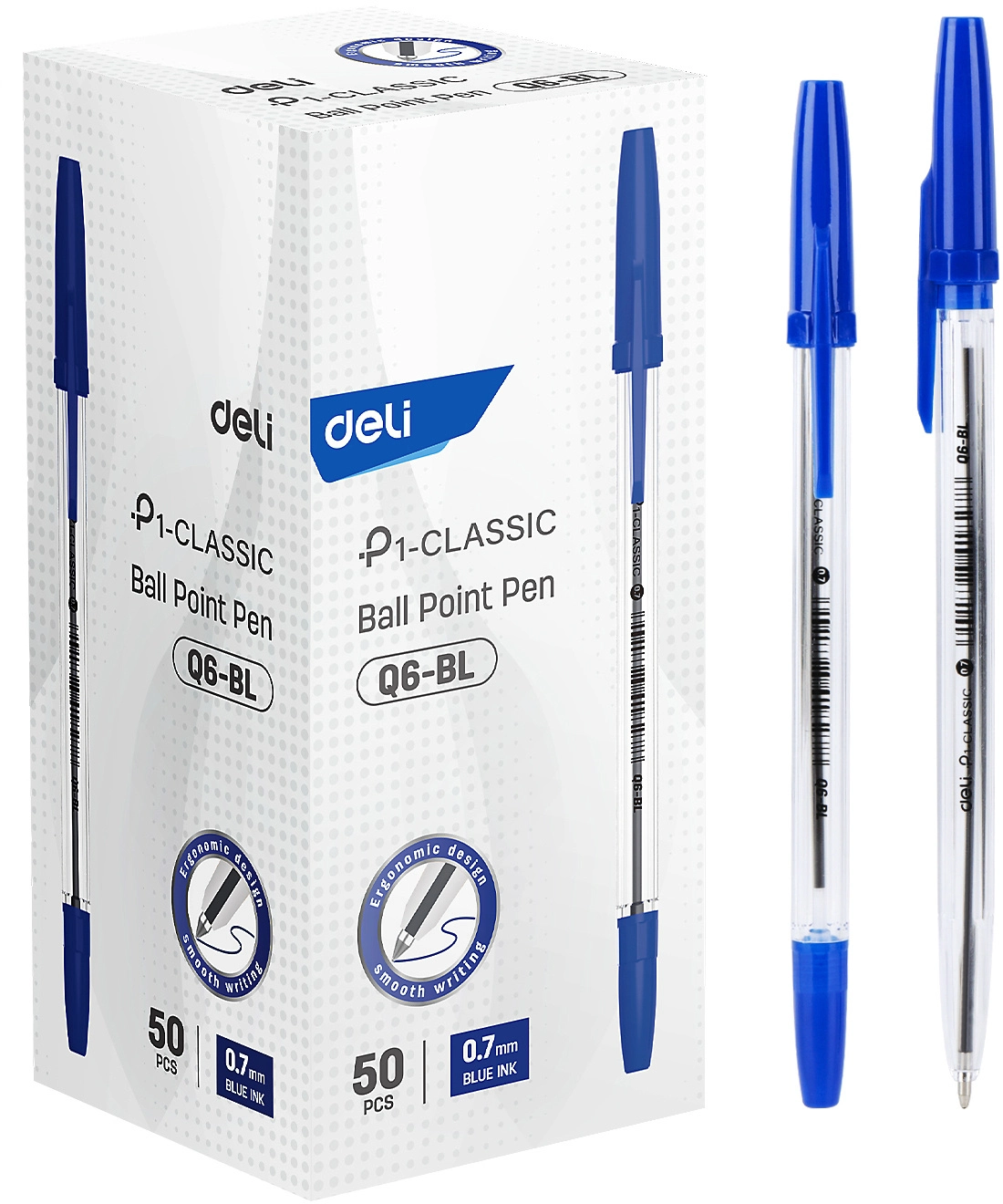 Ручка шариков. Deli P1-Classic EQ6-BL прозрачный d=0.7мм син. черн. (продается кратно 50 шт.)