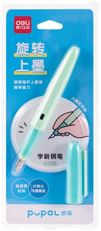 Ручка перьев. Deli Pupal (SF321GREEN) зеленый EF син. черн. блистер резин. манжета стираемая (продается кратно 24 шт.)
