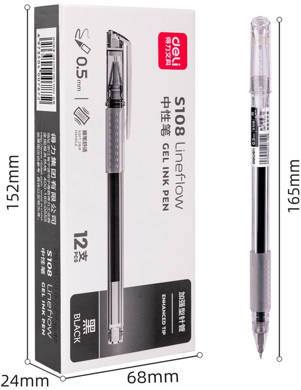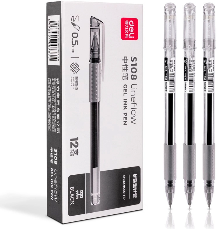 Ручка гелев. Deli S108 d=0.5мм черн. черн. (1шт) резин. манжета (продается кратно 12 шт.)