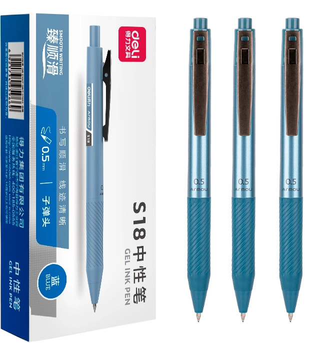 Ручка гелев. автоматическая Deli S18-BL синий син. черн. линия 0.5мм резин. манжета (продается кратно 12 шт.)