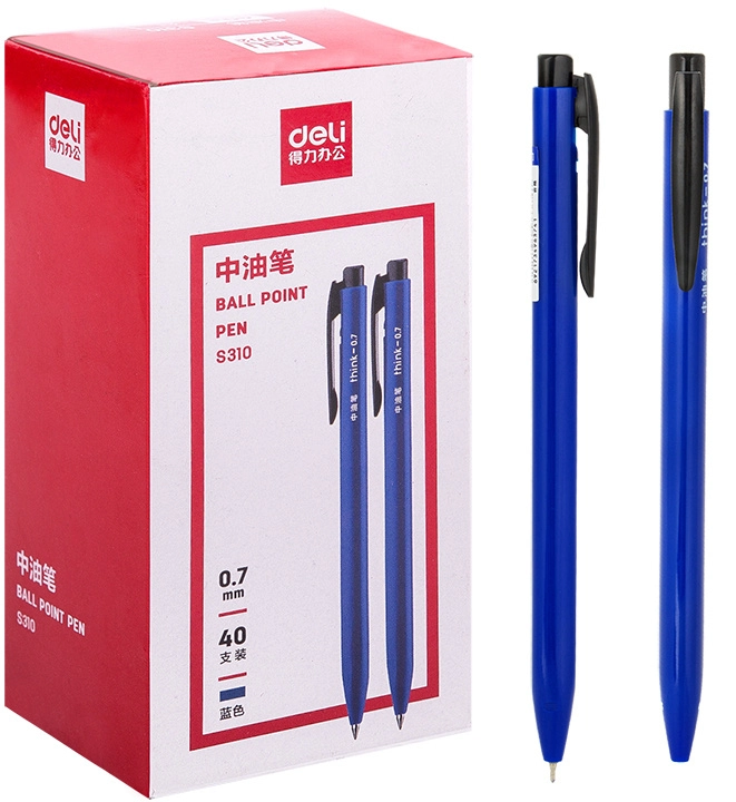Ручка шариков. автоматическая Deli S310-BL синий син. черн. линия 0.7мм (продается кратно 40 шт.)