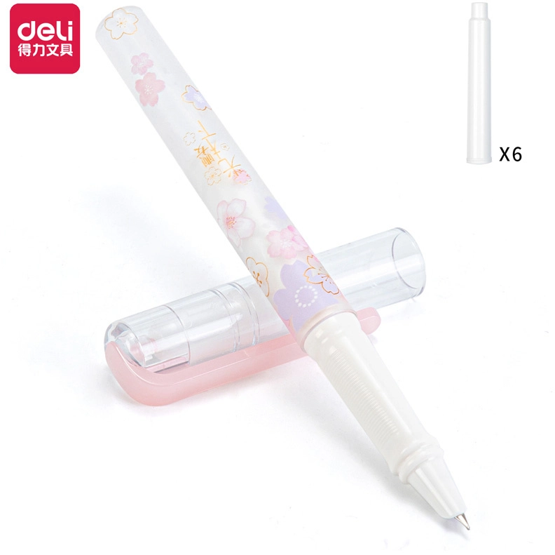 Ручка перьев. Deli Sakura (A938) син. черн. кор.ев. картридж 6шт. (продается кратно 24 шт.)