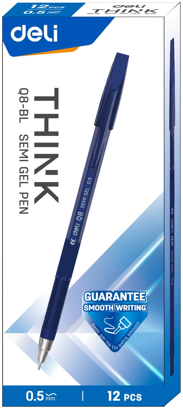 Набор ручек шариков. Deli Think EQ8-BL синий d=0.5мм син. черн. (12шт) (продается кратно 12 шт.)