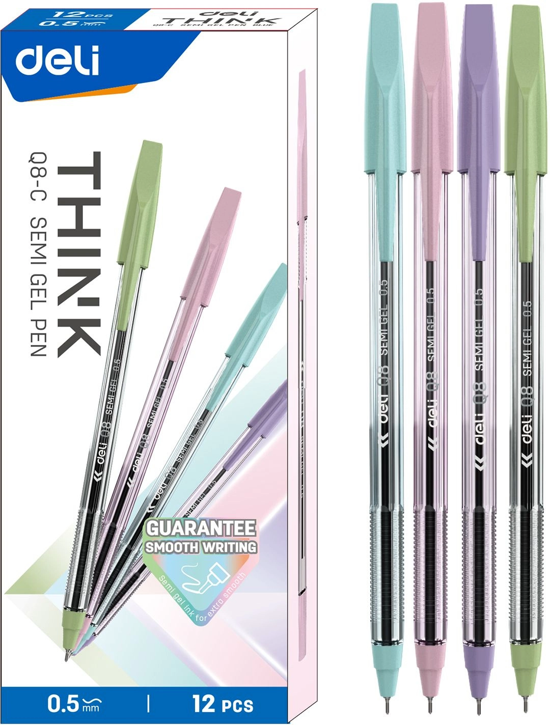 Набор ручек шариков. Deli Think EQ8-C ассорти/прозрачный d=0.5мм син. черн. (12шт) (продается кратно 12 шт.)