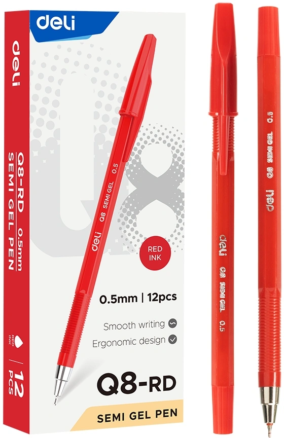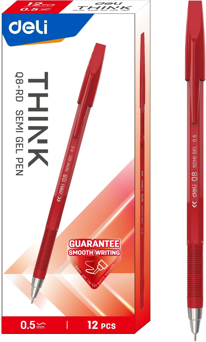 Набор ручек шариков. Deli Think EQ8-RD красн. черн. (12шт) линия 0.5мм (продается кратно 12 шт.)