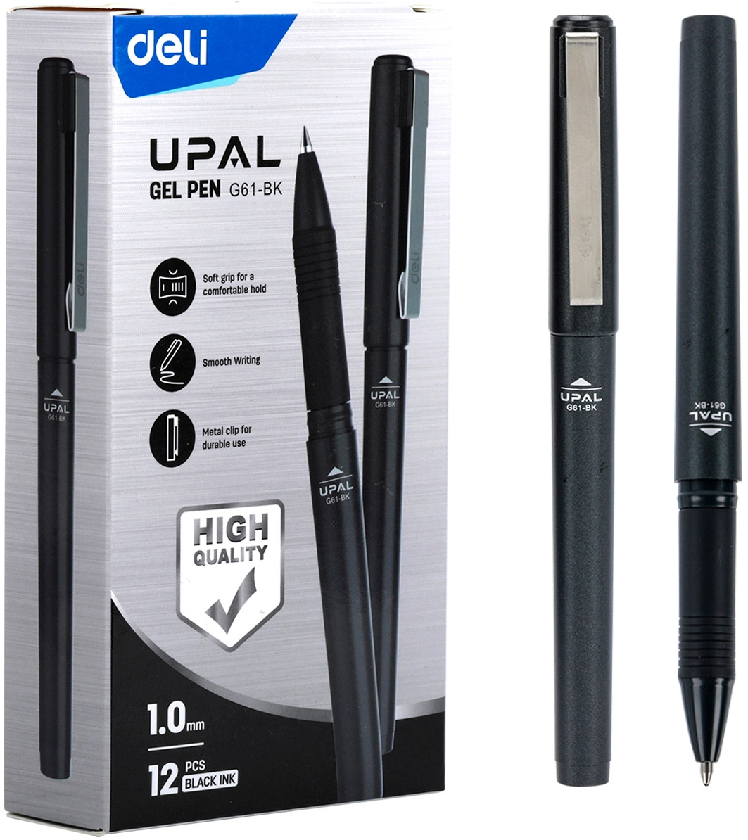 Ручка гелев. Deli Upal EG61-BK черн d=1мм черн. черн. (продается кратно 12 шт.)