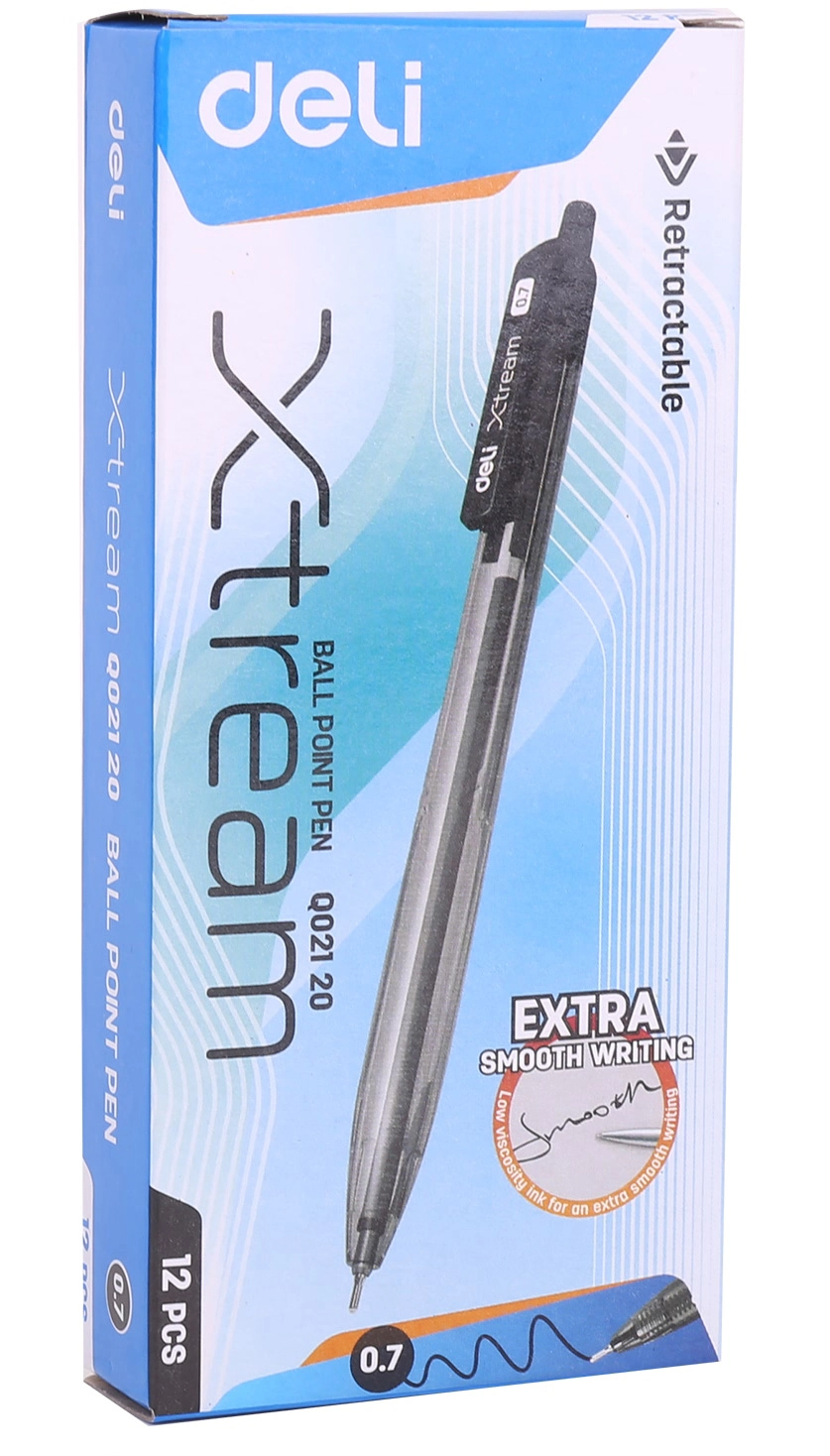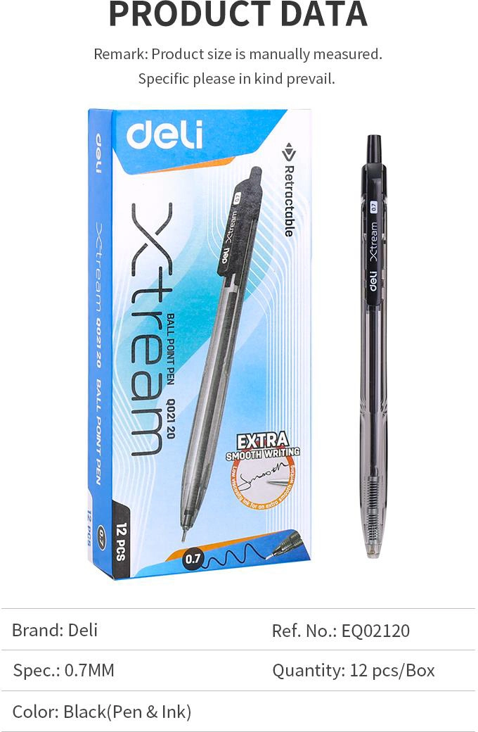 Ручка шариков. автоматическая Deli X-tream EQ02120 черный d=0.7мм черн. черн. сменный стержень линия 0.4мм (продается кратно 12 шт.)