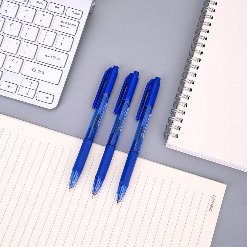 Ручка шариков. автоматическая Deli X-tream EQ02330 прозрачный/синий d=0.7мм син. черн. сменный стержень линия 0.4мм резин. манжета (продается кратно 12 шт.)