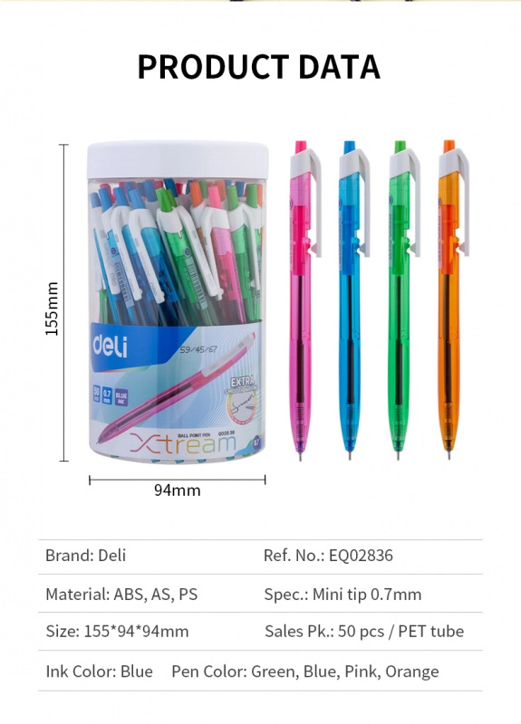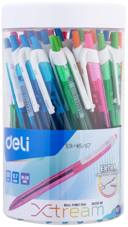 Ручка шариков. автоматическая Deli X-tream EQ02836-1 ассорти d=0.7мм син. черн. линия 0.4мм (продается кратно 50 шт.)