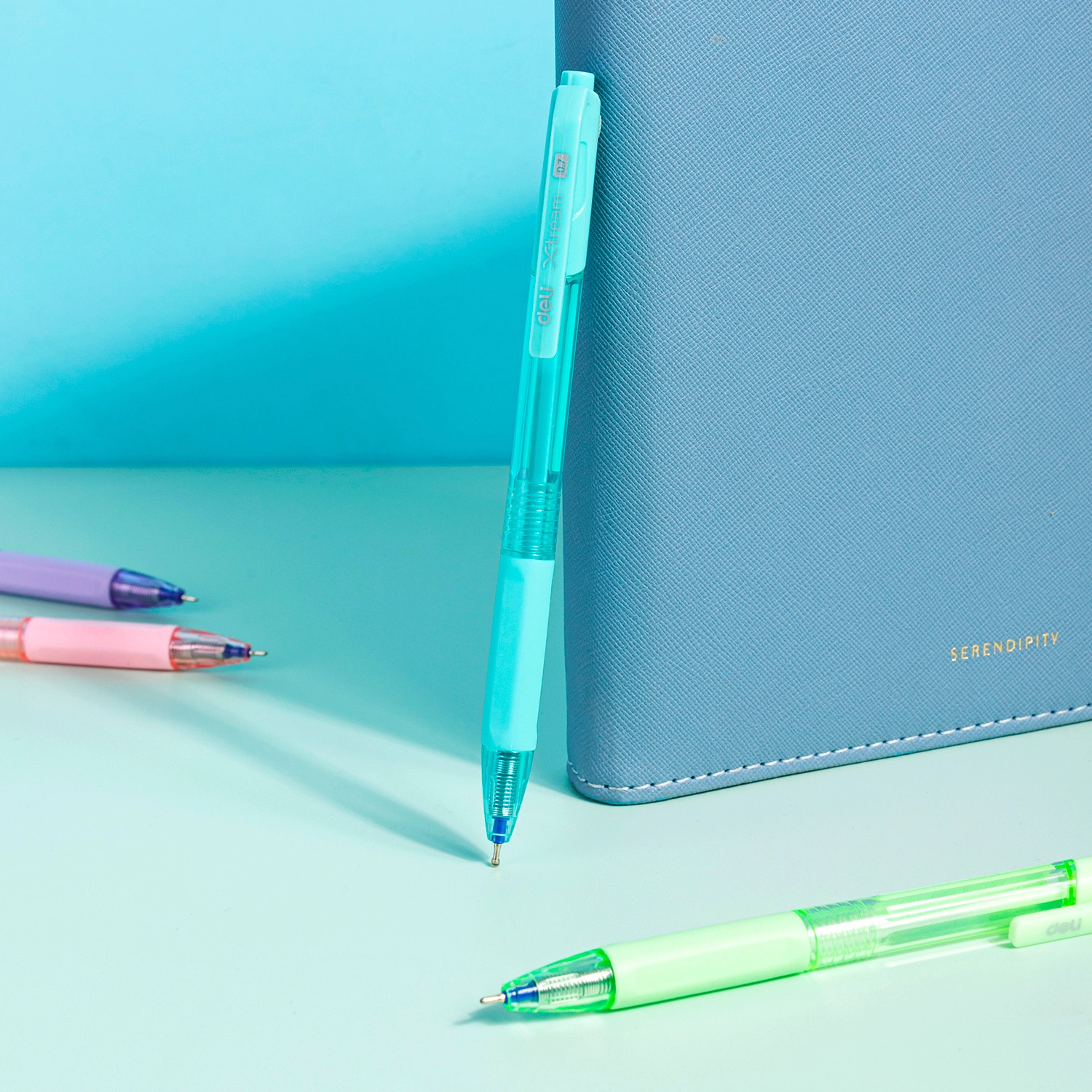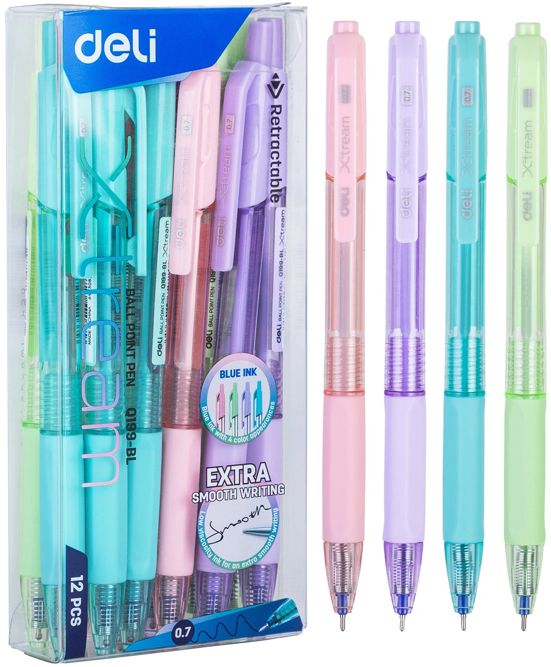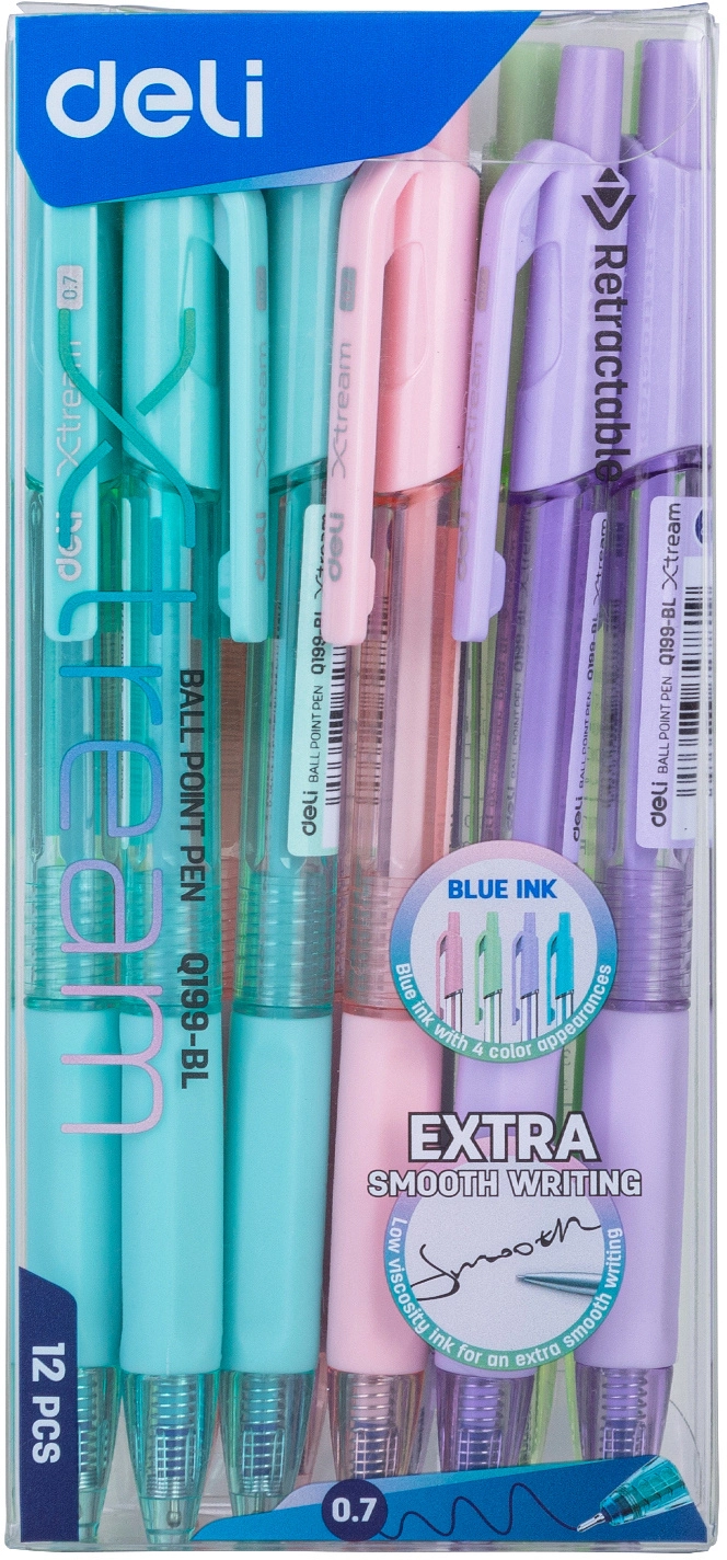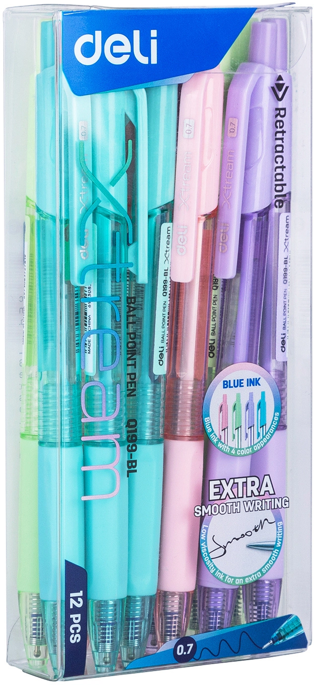Ручка шариков. автоматическая Deli X-tream EQ199-BL d=0.7мм син. черн. резин. манжета (продается кратно 12 шт.)