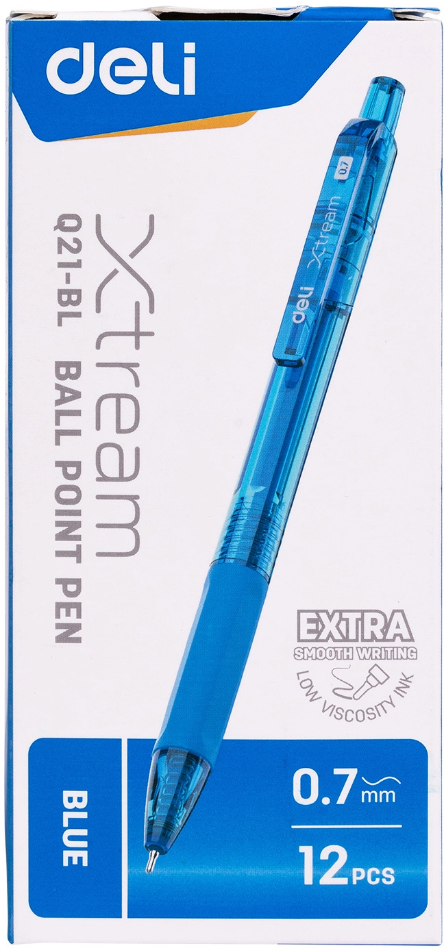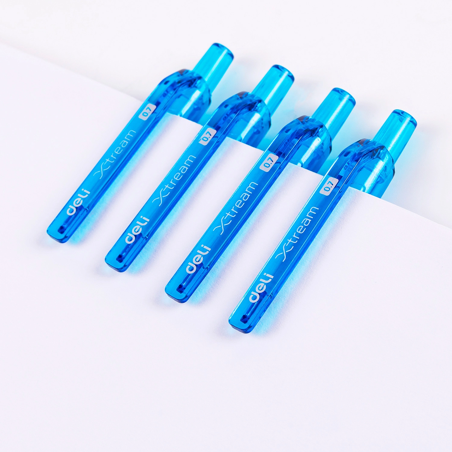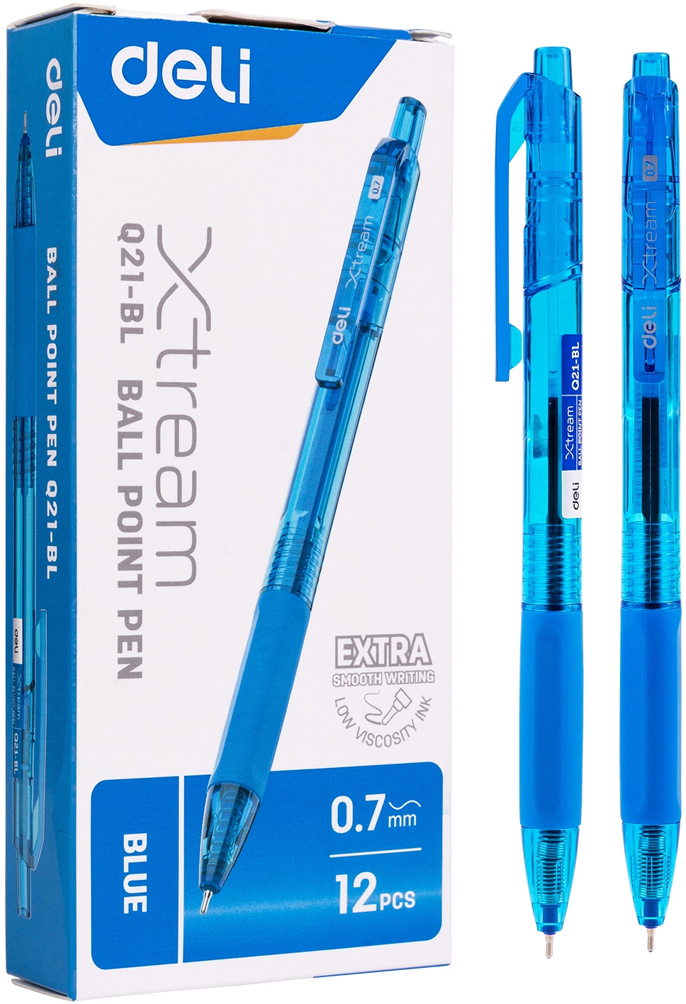 Ручка шариков. автоматическая Deli X-tream EQ21-BL синий/прозрачный d=0.7мм син. черн. резин. манжета (продается кратно 12 шт.) | НИКС Екатеринбург