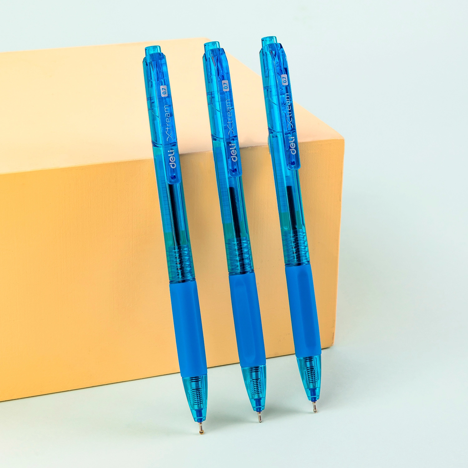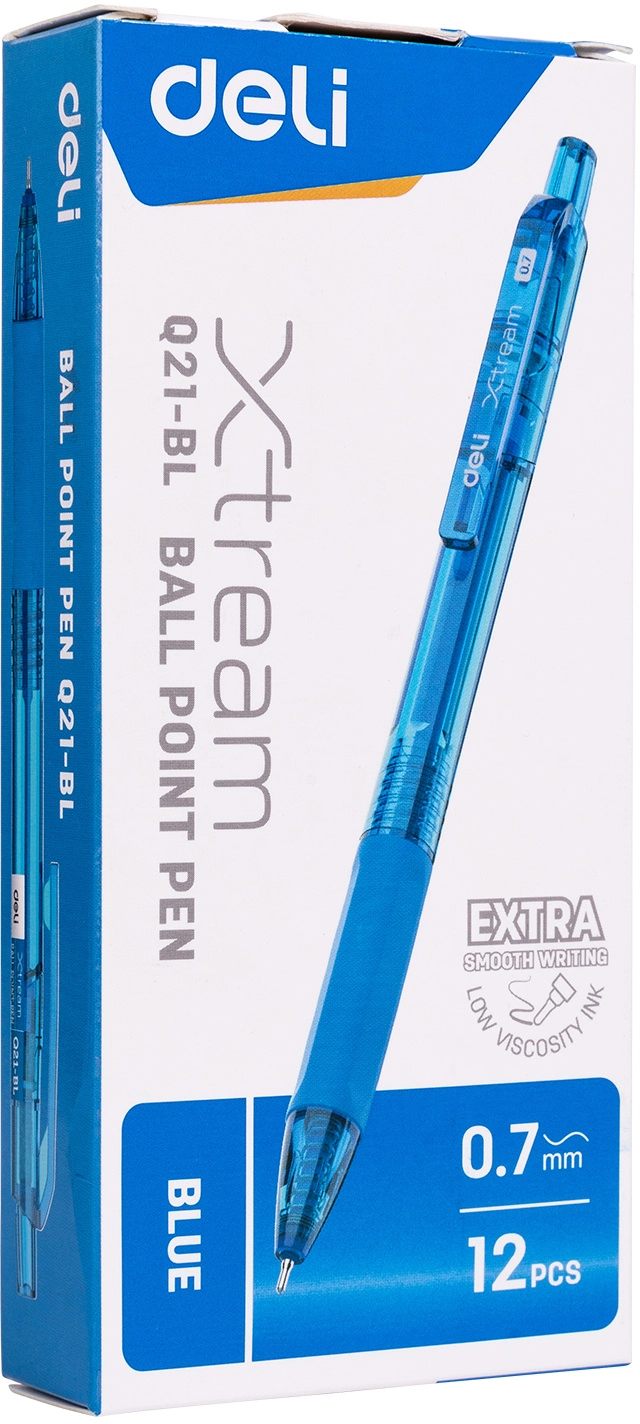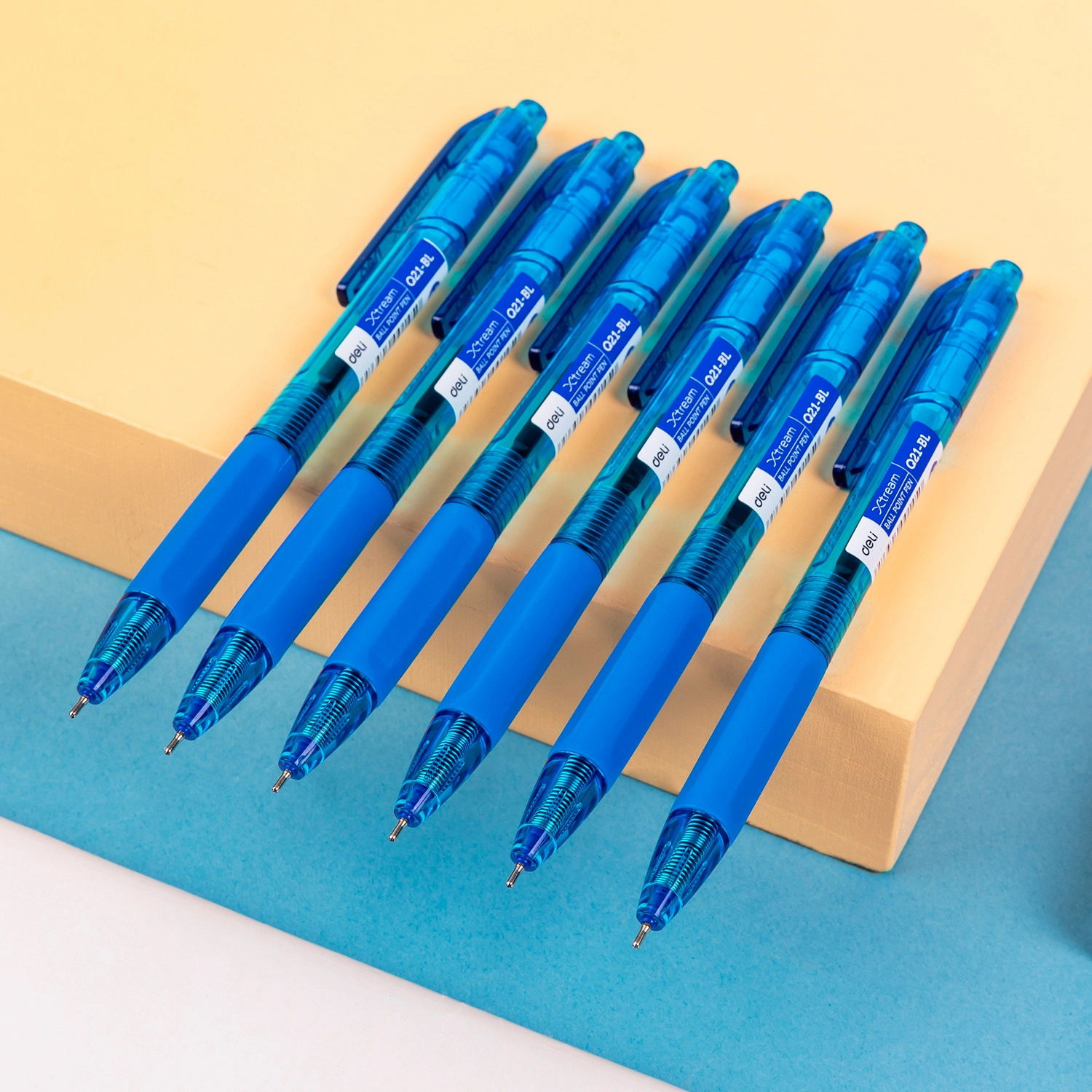 Ручка шариков. автоматическая Deli X-tream EQ21-BL синий/прозрачный d=0.7мм син. черн. резин. манжета (продается кратно 12 шт.) | НИКС Екатеринбург
