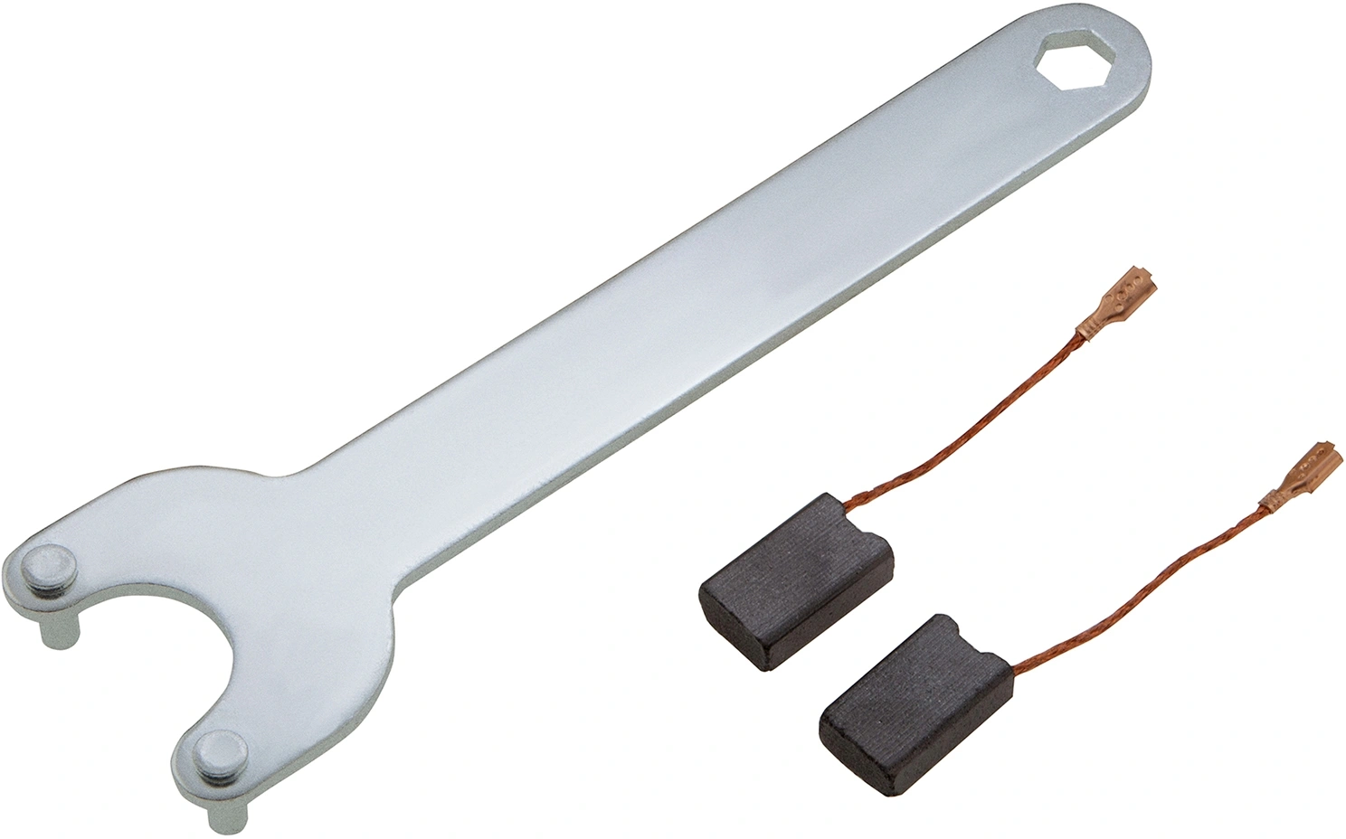 Машина шлифовальная угловая, боковая рукоятка, защитный кожух, комплект угольных щеток, ключ специальный, руководство по эксплуатации и гарантийный талон.