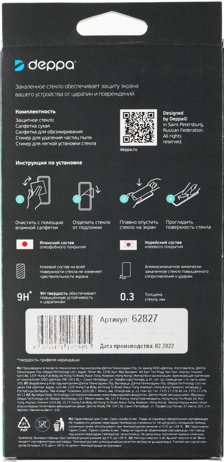 Защитное стекло для экрана Deppa 62827 для Honor 50 lite 2.5D 1шт.
