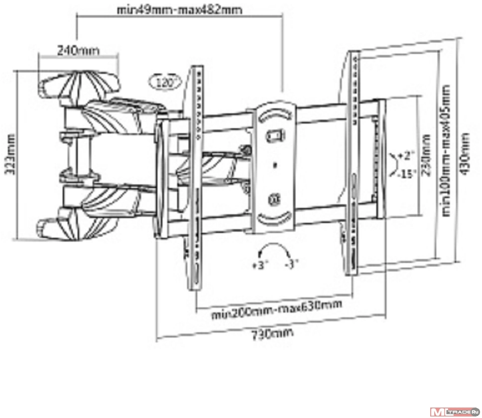 2х2 колена, для Изогнутых и плоских ТВ, Пузырьковый уровень, Встроенный кабель-канал, 3х кратный запас прочности