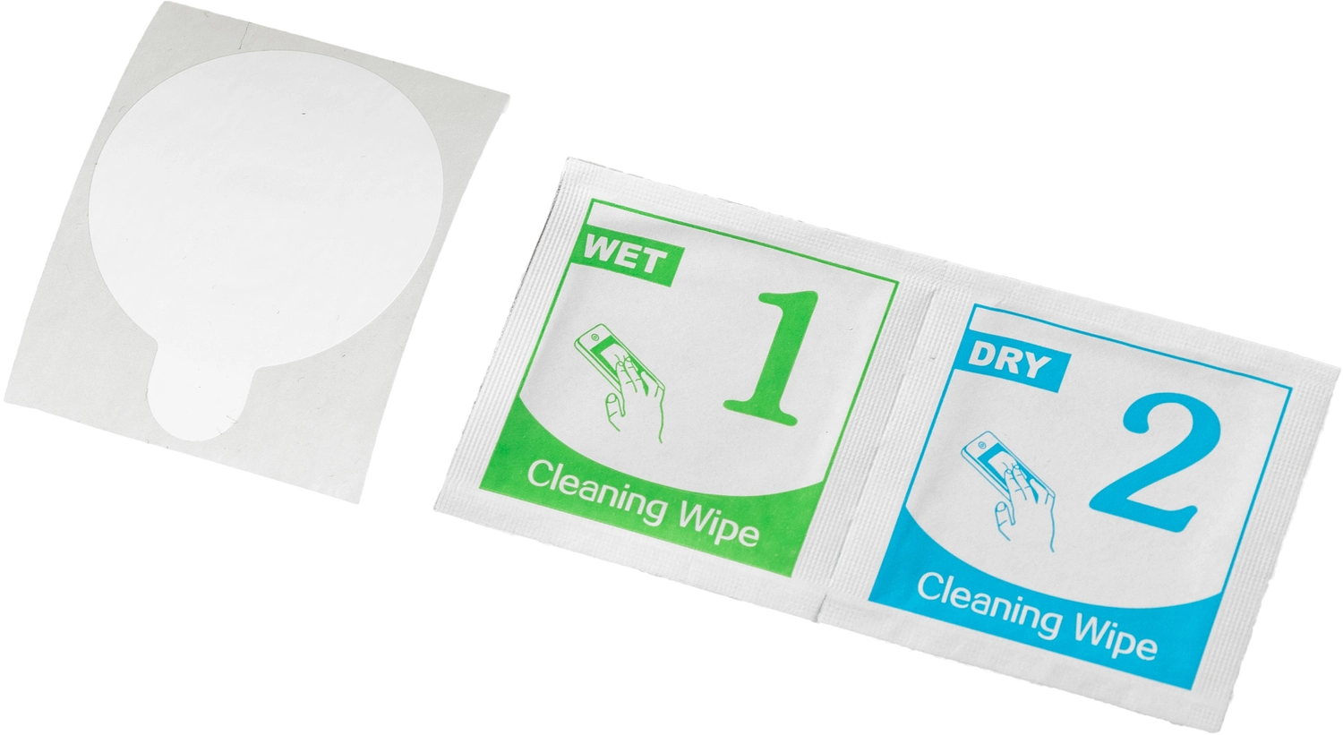 Стекло закаленное – 1 шт. Стикер для удаления пыли – 1 шт. Салфетка – 2 шт. Инструкция.