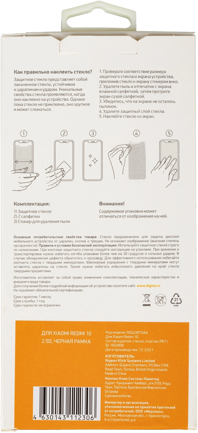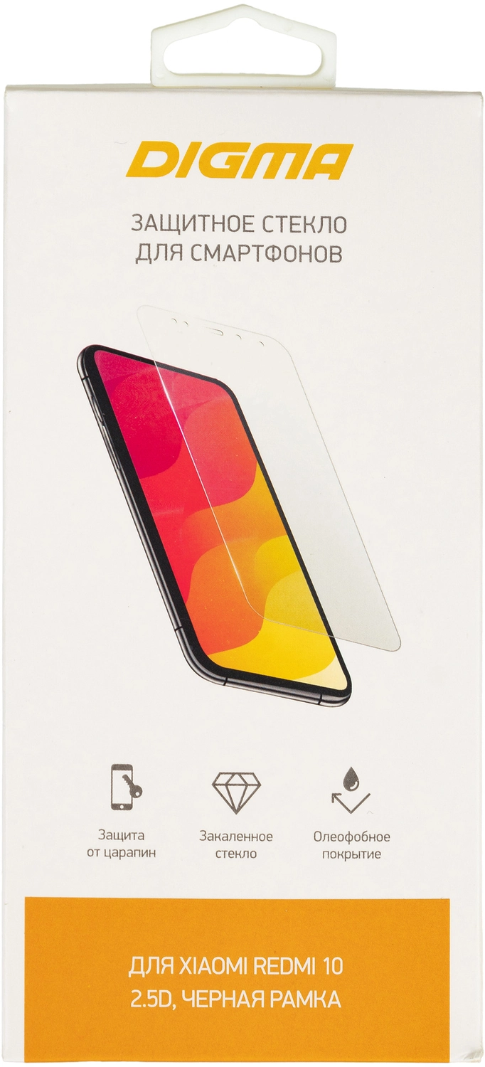 Защитное стекло для экрана Digma 2.5D черный для Xiaomi Redmi 10 2.5D 1шт. (DGG2XR10AA)