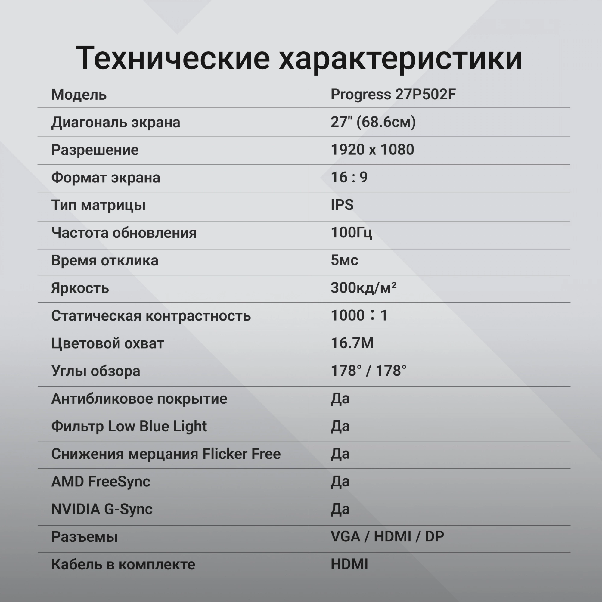 Монитор Digma 27" Progress 27P502F белый IPS LED 5ms 16:9 HDMI M/M матовая 300cd 178гр/178гр 1920x1080 100Hz G-Sync FreeSync VGA DP FHD 4.3кг DM27SB09
